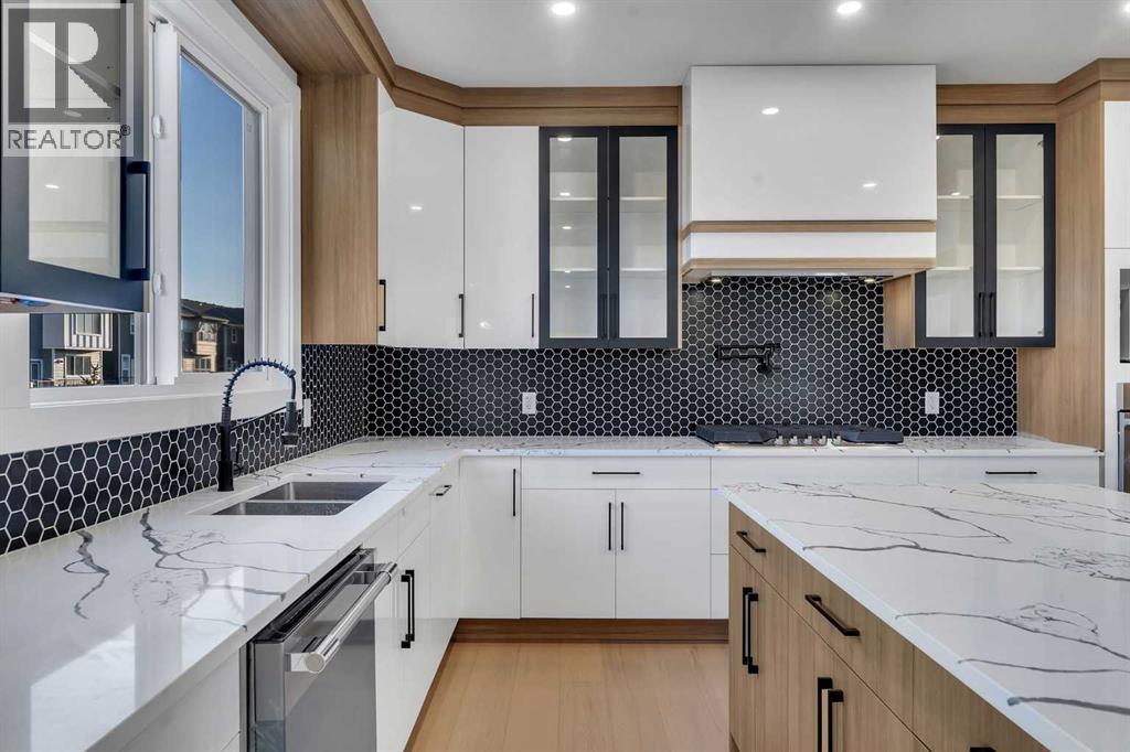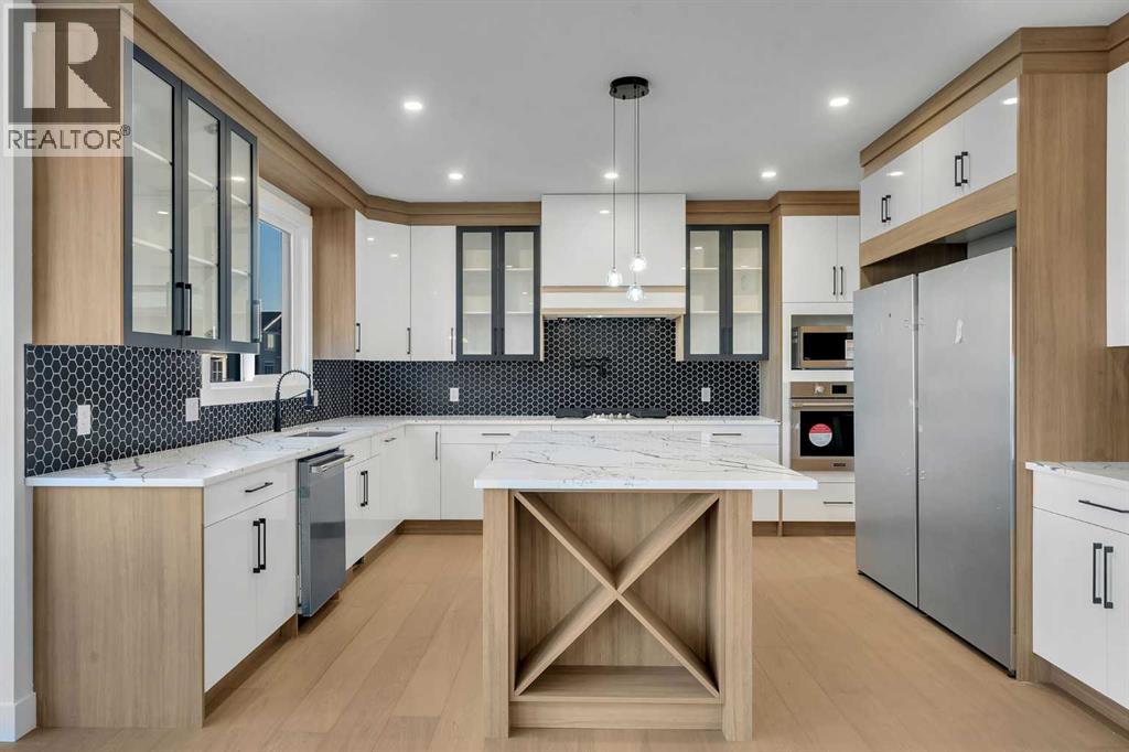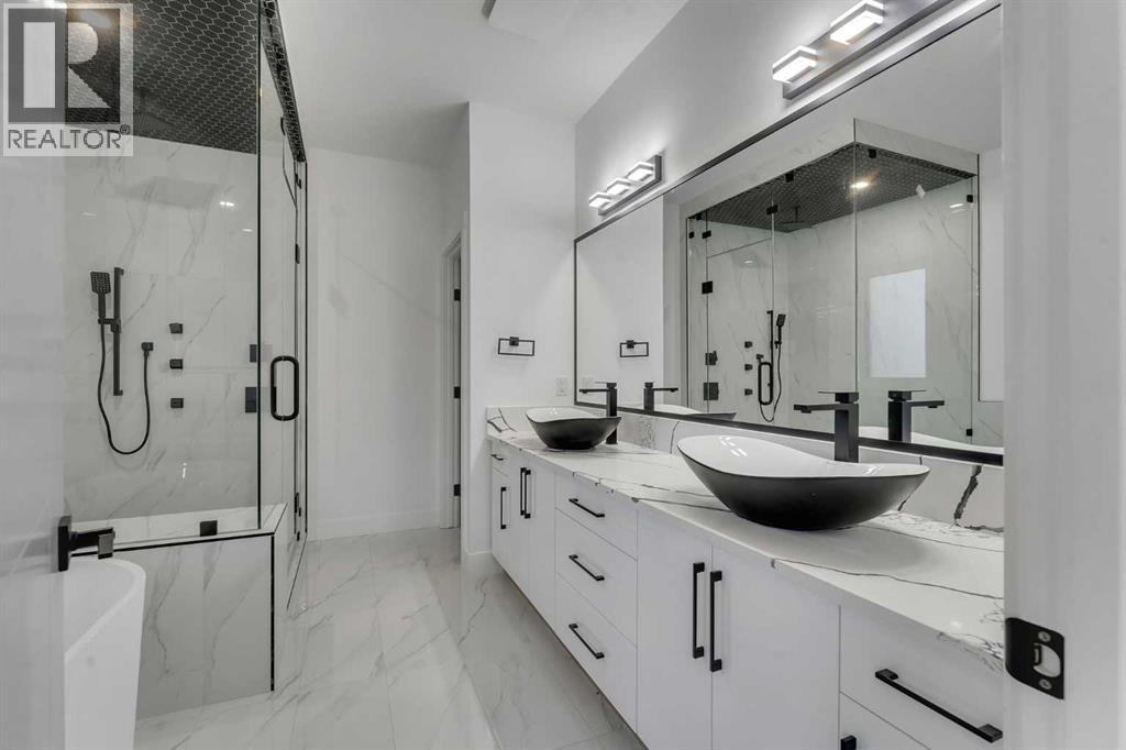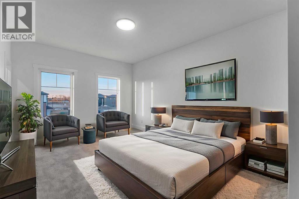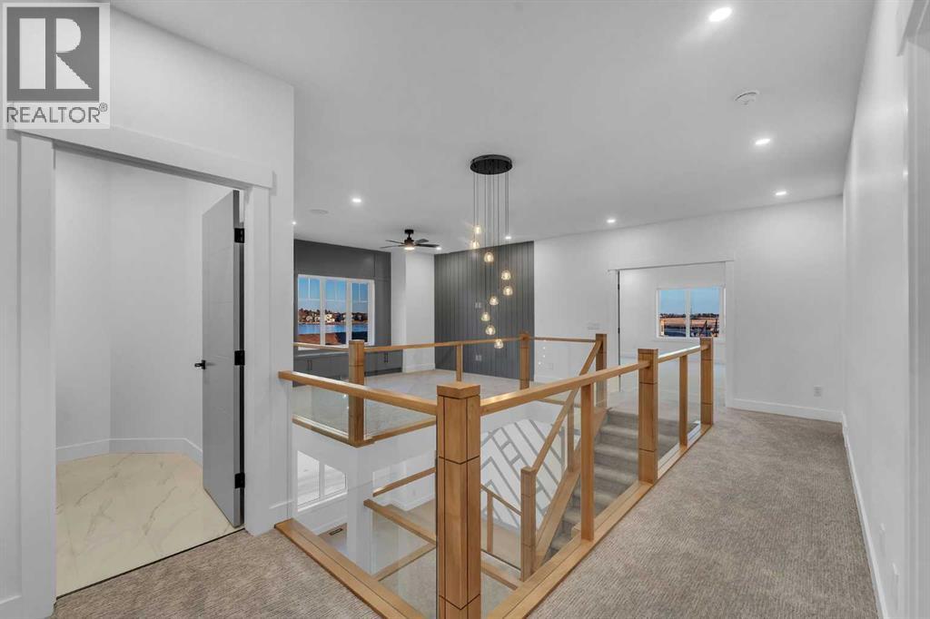 NEW BUILT!! IN SOUTH SHORES!! BACKING ONTO WALKING PATH!! NEAR CHESTERMERE LAKE!! CORNER LOT!! LEGAL SUITE BASEMENT!! SEPARATE ENTRANCE!! TRIPLE ATTACHED GARAGE!! SEPARATE LAUNDRY!! 3 MASTER BEDROOMS!! 7 BED / 5 FULL BATHS!! MAIN FLOOR MASTER!! This beautifully designed corner-lot home in South Shores offers space, luxury, and income potential — all in one. The main floor features a bright family area with gas fireplace, a stunning kitchen with huge island, built-in features, full-height cabinetry, pantry, and a spice kitchen. A rare main-floor primary bedroom with 3PC ENSUITE plus a 2PC powder room completes this level. Upstairs offers 4 SPACIOUS BEDROOMS & 3 FULL BATHS, including a grand primary suite with walk-in closet and 5PC ensuite, another bedroom with its own 4pc ensuite, and two more bedrooms sharing a convenient 5PC bath. Upper-floor laundry adds everyday convenience. The LEGAL SUITE BASEMENT WITH SEPARATE ENTRANCE includes 2 bedrooms, a full kitchen, rec area, SEPARATE LAUNDRY, and 1.5 BATH. Finished with a clean, modern colour theme throughout. AN INCREDIBLE OPPORTUNITY NEAR CHESTERMERE LAKE — LUXURY, SPACE & LEGAL SUITE ALL IN ONE HOME!! (id:51913)