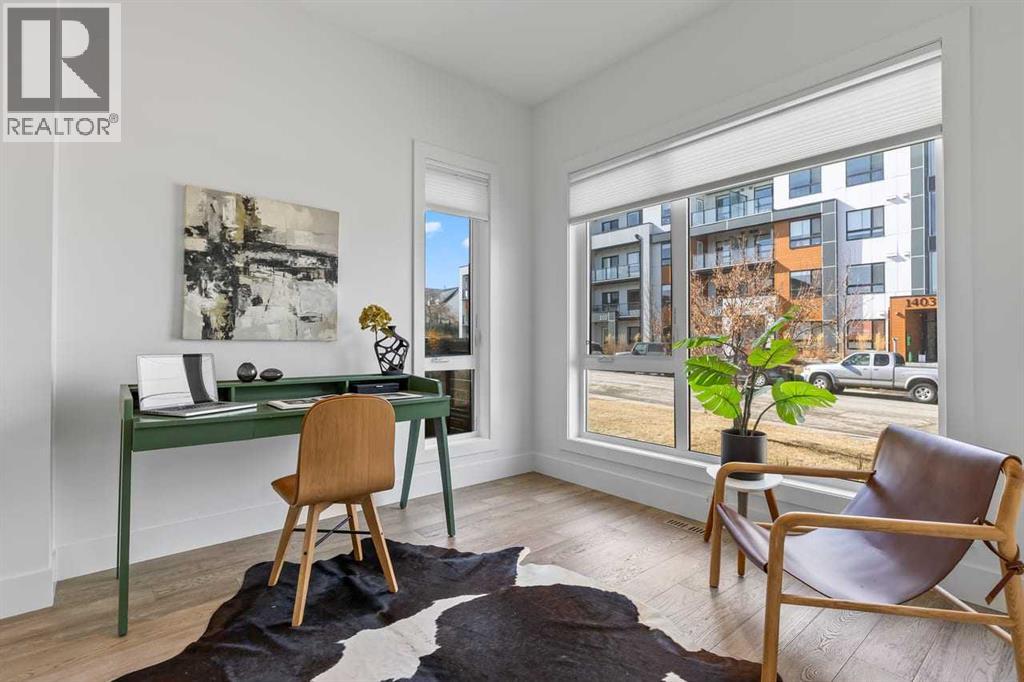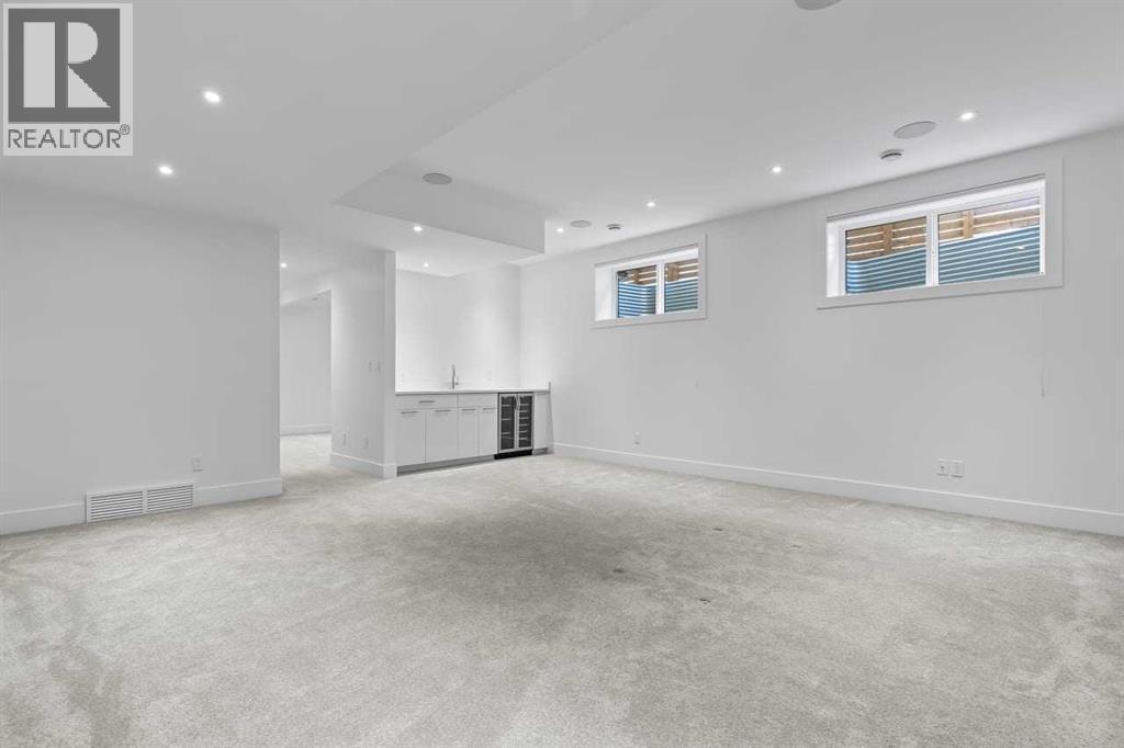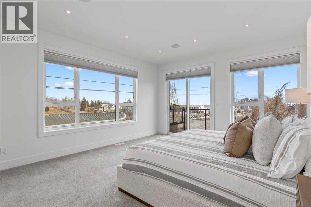 Welcome to 1400 26A Street SW, a standout inner-city home offering 3600+ sq ft of total living space in the highly coveted community of Shaganappi. This architecturally striking three-storey design blends modern luxury with exceptional functionality, enhanced by beautiful city and Shaganappi Golf Course views.The main floor features a spacious foyer with a built-in front closet, a dedicated main-floor den, and a bright, open layout with a generous dining room. The chef-inspired kitchen offers an oversized island, high-end finishes, and a walk-in pantry. At the back of the home, the inviting living room centers around a gas fireplace, while the well-designed mudroom with custom storage leads to the maintenance-free yard.The second floor includes a flexible family lounge, a second primary bedroom with a walk-in closet, 5-pc ensuite, and private balcony, plus another large bedroom with its own walk-in closet, a full bathroom, and upper laundry.The entire third floor is a luxury primary retreat, featuring a generous bedroom, a dream-worthy boutique walk-in closet, and a spa-inspired 5-pc ensuite. Oversized windows showcase stunning city and golf course views from inside the bedroom, with a private balcony offering an additional outdoor escape. The fully developed basement adds a large recreation/media room, a stylish wet bar, a bedroom with walk-in closet, a full bathroom, and ample storage — ideal for guests or a home gym.This is inner-city living at its finest: walkable, connected, and minutes to downtown, while offering the space, comfort, and elevated design rarely found in the core.More than a home - it’s a lifestyle statement! (id:51913)