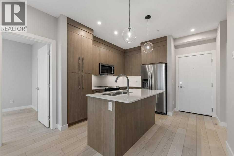 Welcome to Cavallo — a remarkable new development by Truman Homes, nestled in one of Calgary’s newest and most vibrant communities: Cityscape. This brand-new 2-bedroom, 2-bathroom condo showcases a modern open-concept layout, thoughtfully designed with high-end finishes throughout. Step inside to find luxury vinyl plank flooring, oversized windows, and a sliding glass door. The contemporary kitchen boasts soft-close cabinetry, generous storage space, and a full suite of brand-new stainless steel appliances. The spacious primary bedroom is filled with natural light from large windows and includes a walkthrough closet that leads directly into a well-appointed 3-piece bathroom. The versatile second bedroom makes a perfect guest room or a home office plus another 4 piece full bathroom. Cavallo is a pet-friendly building with a range of modern amenities, including a pet spa, fitness Centre, entertainment lounge, visitor parking, and EV charging stations. With retail shops, parks, and daily conveniences just minutes away, this home offers the perfect balance of style, comfort, functionality and the benefit of your own titled underground parking stall.Don’t miss your chance to be the first to call this exceptional unit home! (id:51913)