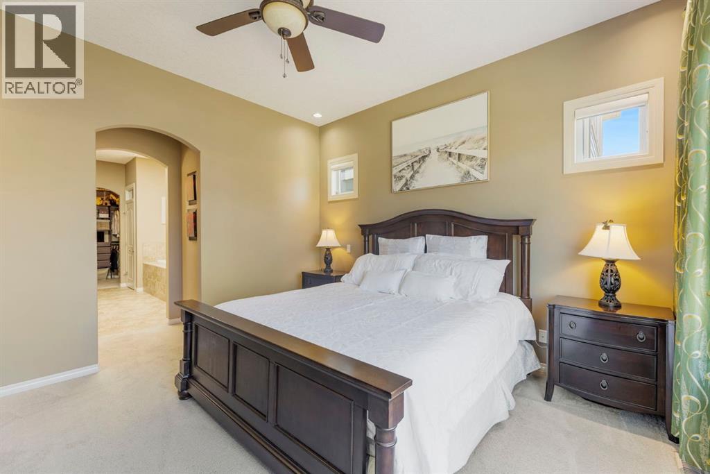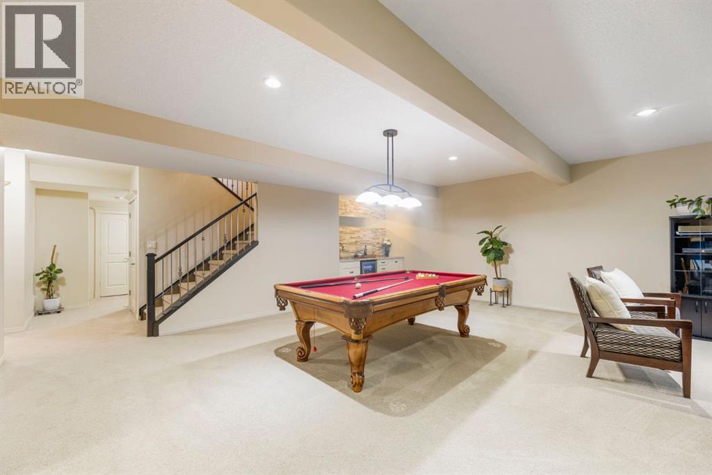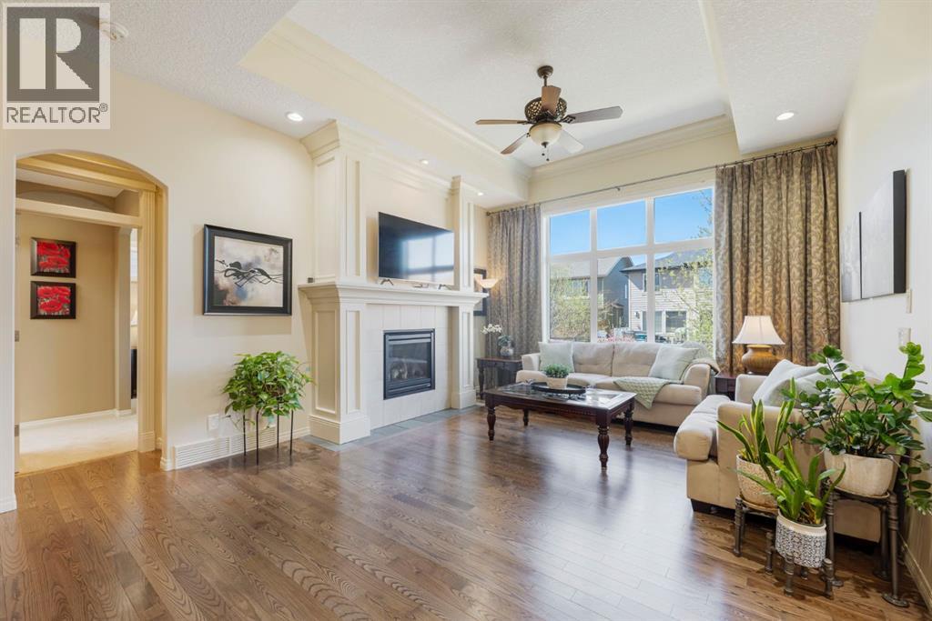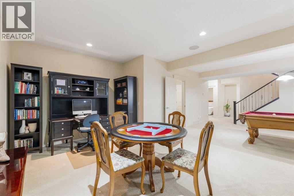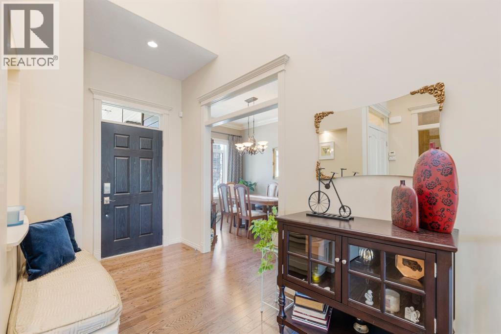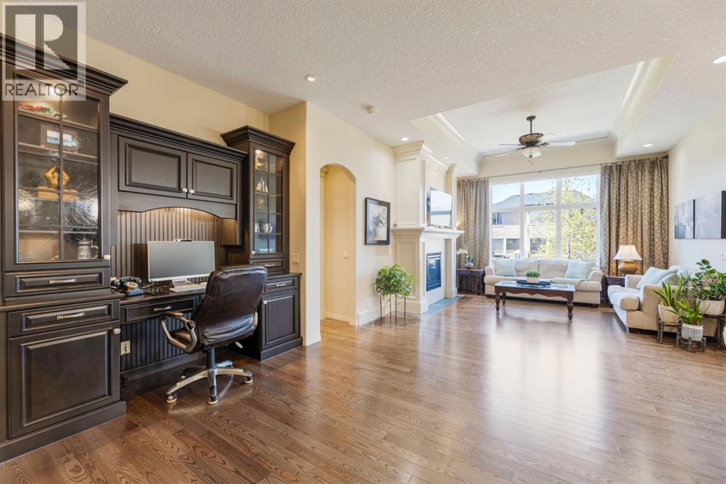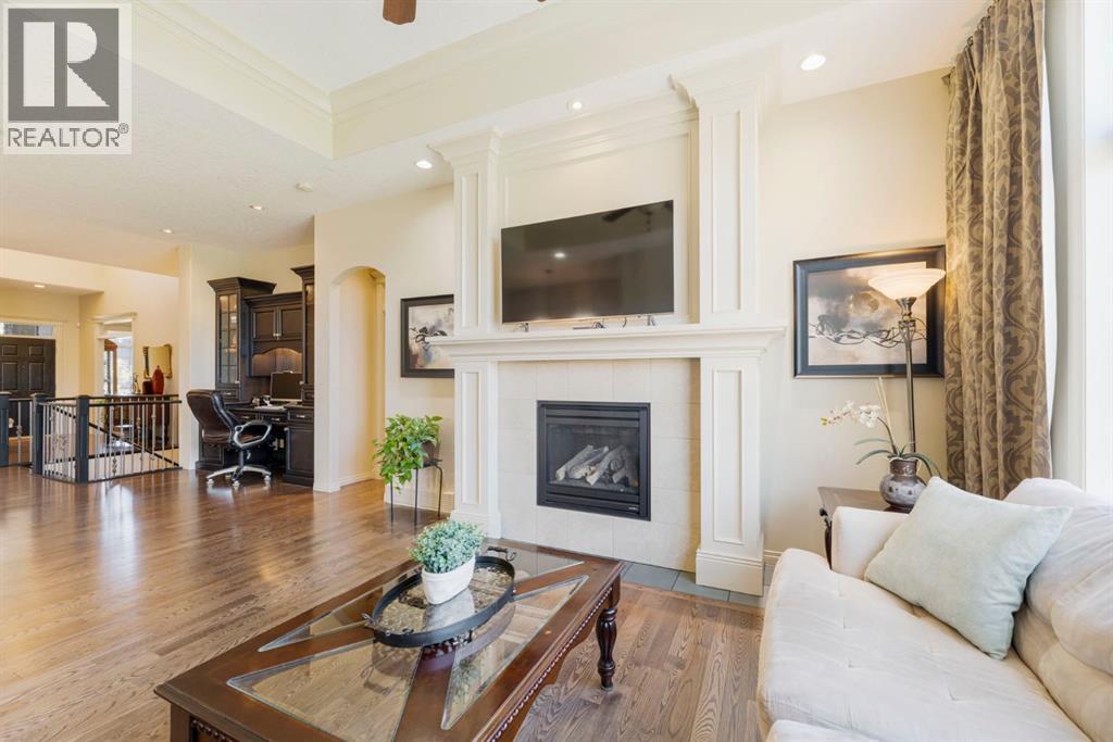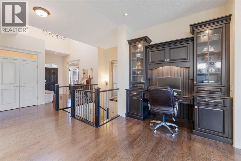 Welcome to this Albi-built, custom-crafted bungalow in the heart of one of Calgary’s most desirable lake communities. Just nine homes from the shared dock, this residence offers a perfect blend of luxury, comfort, and rare lake access. From the moment you arrive, the curb appeal makes a statement—stained solid wood garage doors, full-height brick columns, and pristine landscaping set the tone for what’s inside. Step into a warm foyer that opens to a bright, open-concept layout featuring soaring 10-foot ceilings, transom windows, and rich hardwood floors throughout the main level. The gourmet kitchen is designed to impress, with ceiling-height cabinetry, granite countertops, a central island with spice cabinets at both ends, built-in wall oven and microwave with warming drawer, and a walk-through pantry for everyday convenience. The adjacent living room offers a cozy gas fireplace framed with custom millwork and expansive windows that fill the home with natural light while showcasing views of the backyard. A formal dining room provides an elegant space for entertaining, while the built-in home office is both stylish and functional. The spacious primary suite is a true retreat, complete with a spa-inspired ensuite featuring heated tile floors, a jetted tub, walk-in shower, dual vanities, and skylight. The walk-in closet even has its own window for natural light. The fully finished basement expands your living space with 9-foot ceilings, a large recreation room, two additional bedrooms, office space, and a full bathroom—ideal for family or guests. Outdoors, your sunny backyard oasis awaits with a spacious deck overlooking the greenbelt and walking path. Whether hosting or relaxing, it’s the perfect extension of your living space. And with the lake just steps away, every day feels like a vacation.Additional highlights include central air conditioning, toe-kick vacuums in the kitchen and ensuite, oversized windows, and the welcoming sense of community this neighbourhood is known for. This isn’t just a home it’s a lifestyle. (id:51913)