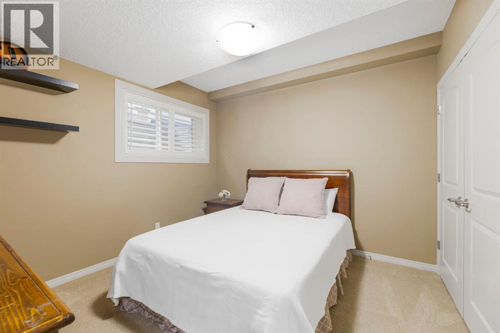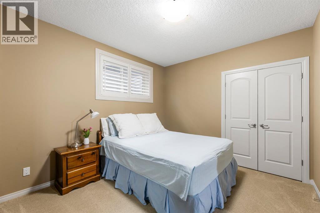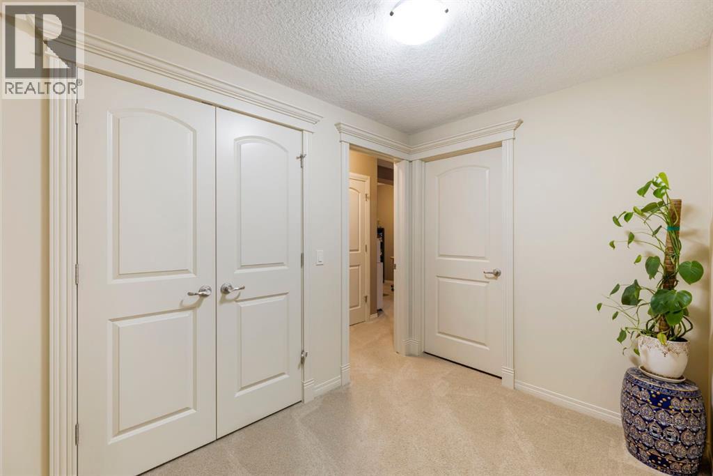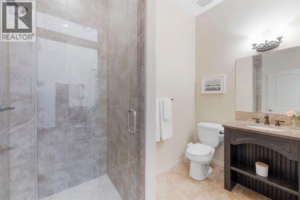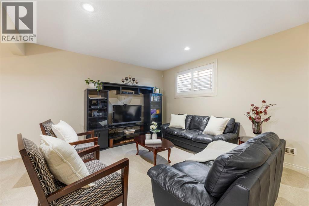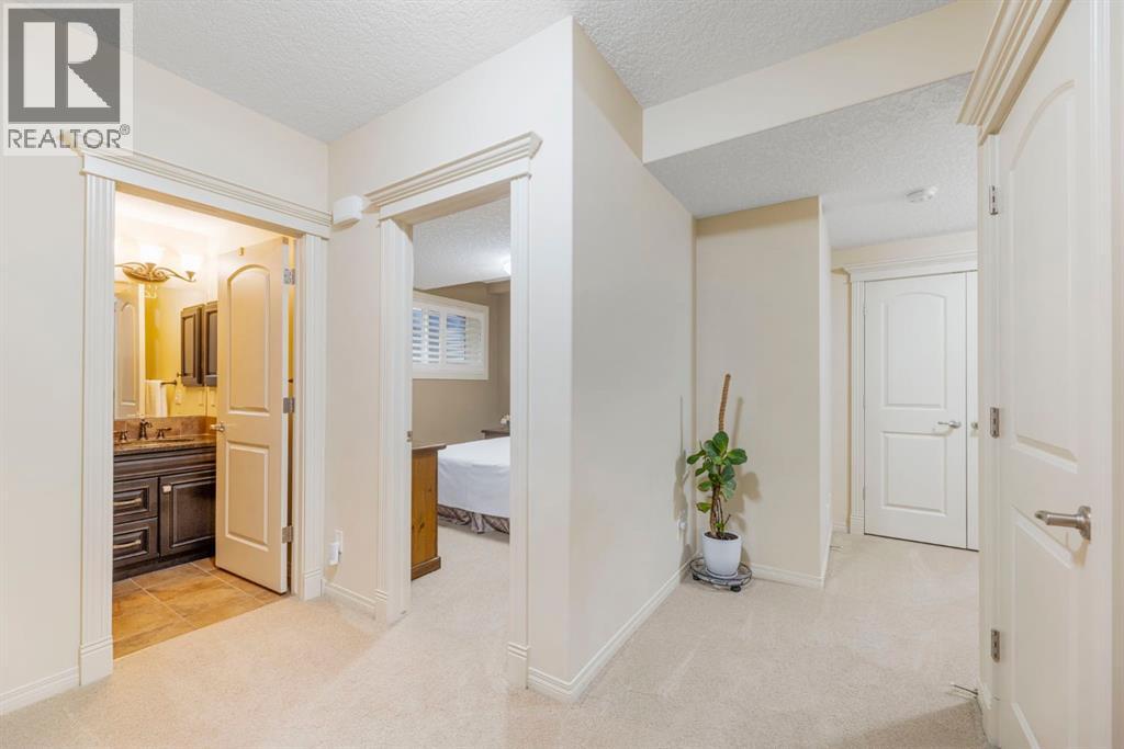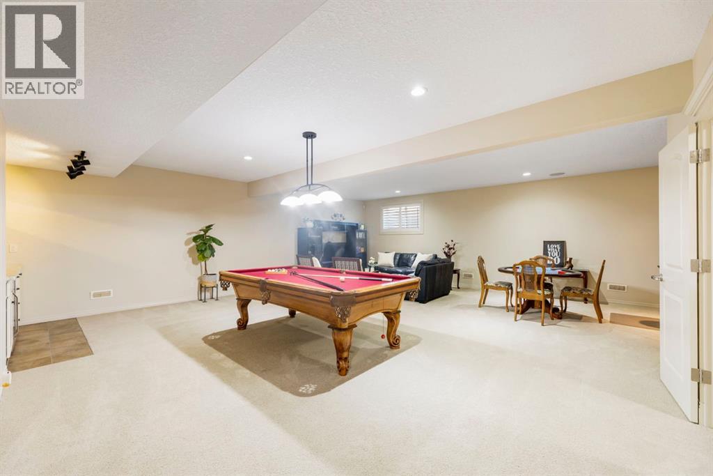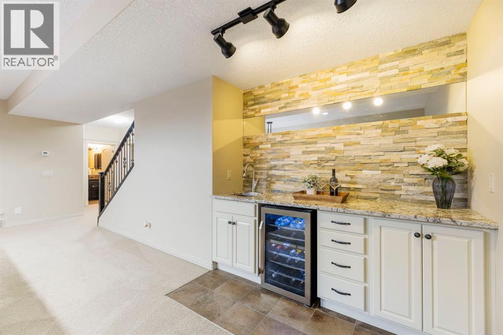 Welcome to this Albi-built, custom-crafted bungalow in the heart of one of Calgary’s most desirable lake communities. Just nine homes from the shared dock, this residence offers a perfect blend of luxury, comfort, and rare lake access. From the moment you arrive, the curb appeal makes a statement—stained solid wood garage doors, full-height brick columns, and pristine landscaping set the tone for what’s inside. Step into a warm foyer that opens to a bright, open-concept layout featuring soaring 10-foot ceilings, transom windows, and rich hardwood floors throughout the main level. The gourmet kitchen is designed to impress, with ceiling-height cabinetry, granite countertops, a central island with spice cabinets at both ends, built-in wall oven and microwave with warming drawer, and a walk-through pantry for everyday convenience. The adjacent living room offers a cozy gas fireplace framed with custom millwork and expansive windows that fill the home with natural light while showcasing views of the backyard. A formal dining room provides an elegant space for entertaining, while the built-in home office is both stylish and functional. The spacious primary suite is a true retreat, complete with a spa-inspired ensuite featuring heated tile floors, a jetted tub, walk-in shower, dual vanities, and skylight. The walk-in closet even has its own window for natural light. The fully finished basement expands your living space with 9-foot ceilings, a large recreation room, two additional bedrooms, office space, and a full bathroom—ideal for family or guests. Outdoors, your sunny backyard oasis awaits with a spacious deck overlooking the greenbelt and walking path. Whether hosting or relaxing, it’s the perfect extension of your living space. And with the lake just steps away, every day feels like a vacation.Additional highlights include central air conditioning, toe-kick vacuums in the kitchen and ensuite, oversized windows, and the welcoming sense of community this neighbourhood is known for. This isn’t just a home it’s a lifestyle. (id:51913)