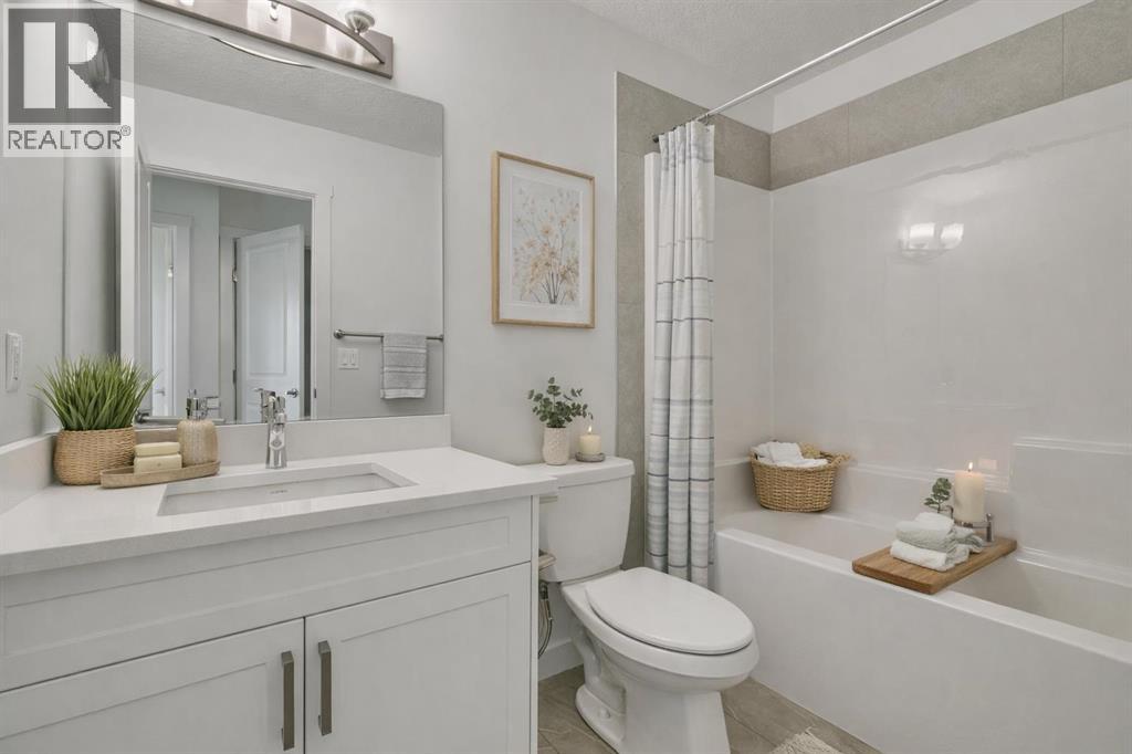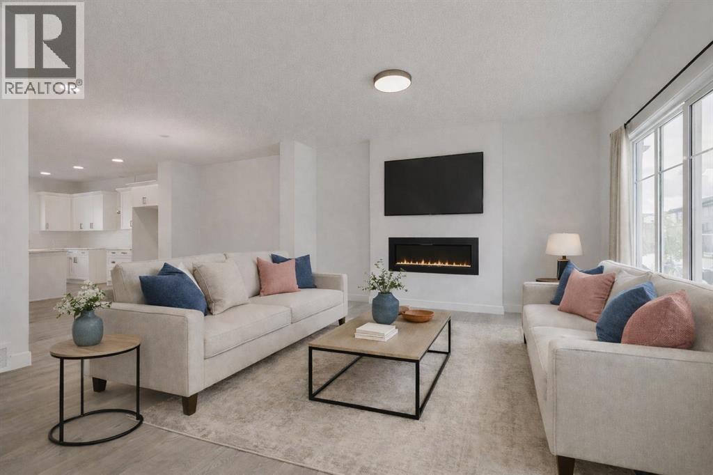 OVER 2000 SQFT WITH A 4TH BEDROOM ON THE MAIN FLOOR & FULL BATH - DESIGNED FOR MODERN FAMILY LIVING! Welcome to Dalton by Akash Homes in the vibrant SW community of Belmont. This thoughtfully designed zero-lot-line home offers a bright open-concept main floor featuring a spacious kitchen with large island, pantry, and seamless flow into the dining nook and living room with fireplace, perfect for entertaining. The main floor bedroom and full bathroom provide incredible flexibility for guests, multigenerational living, or a private office space.Upstairs you’ll find 3 generously sized bedrooms, including a primary retreat with walk-in closet and ensuite, along with a central bonus room and convenient upper floor laundry. Built with comfort and style in mind, this home features 9’ ceilings and quartz countertops throughout, delivering a clean, modern finish. PLUS A SEPARATE SIDE ENTRANCE AND $5000 BUILDER APPLIANCE CREDIT TO THE BRICK.Located in Belmont, enjoy parks, pathways, future schools, and quick access to Macleod Trail, Stoney Trail, shopping, and transit.PICTURES ARE ARTIST CONCEPT; ACTUAL HOME, PLANS, FIXTURES, AND FINISHES MAY VARY AND ARE SUBJECT TO CHANGE WITHOUT NOTICE. (id:51913)
