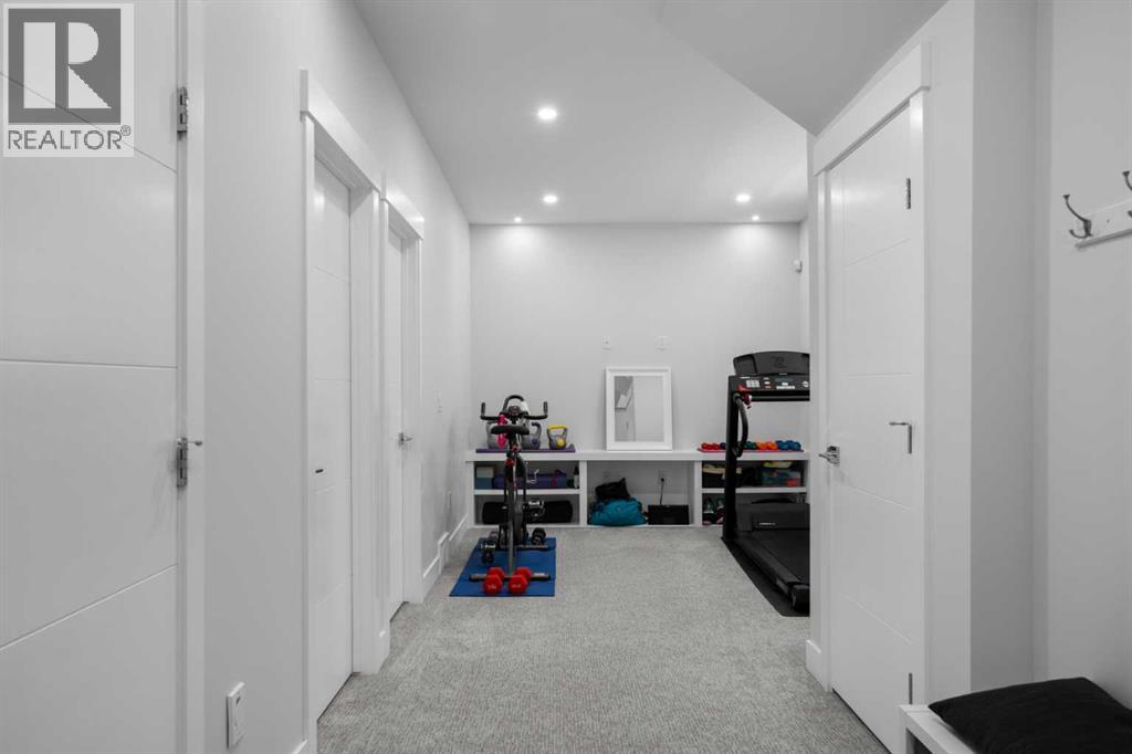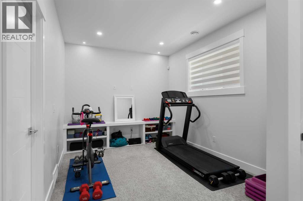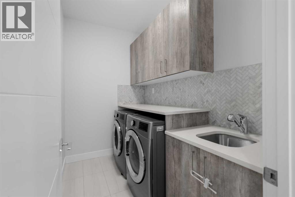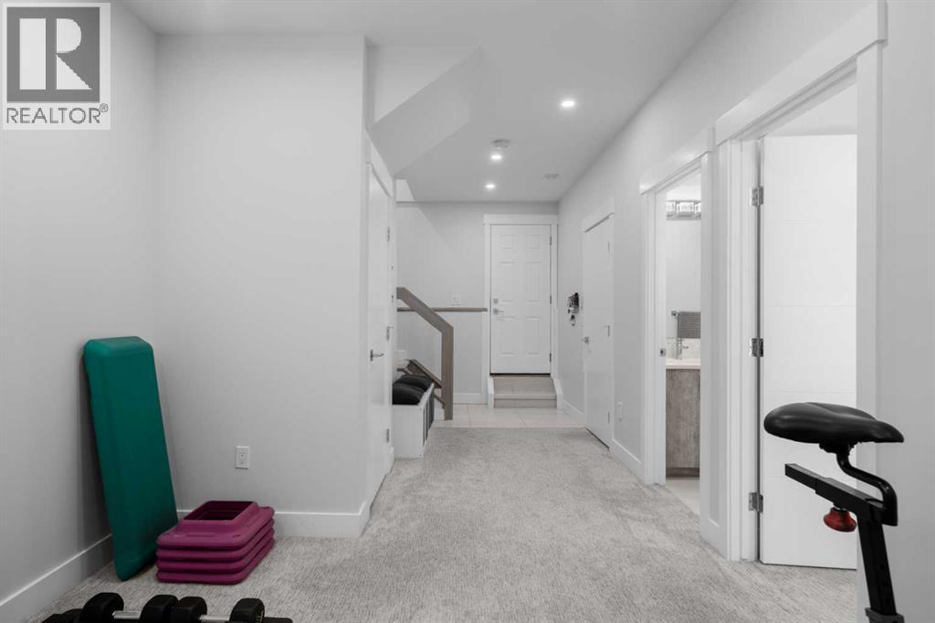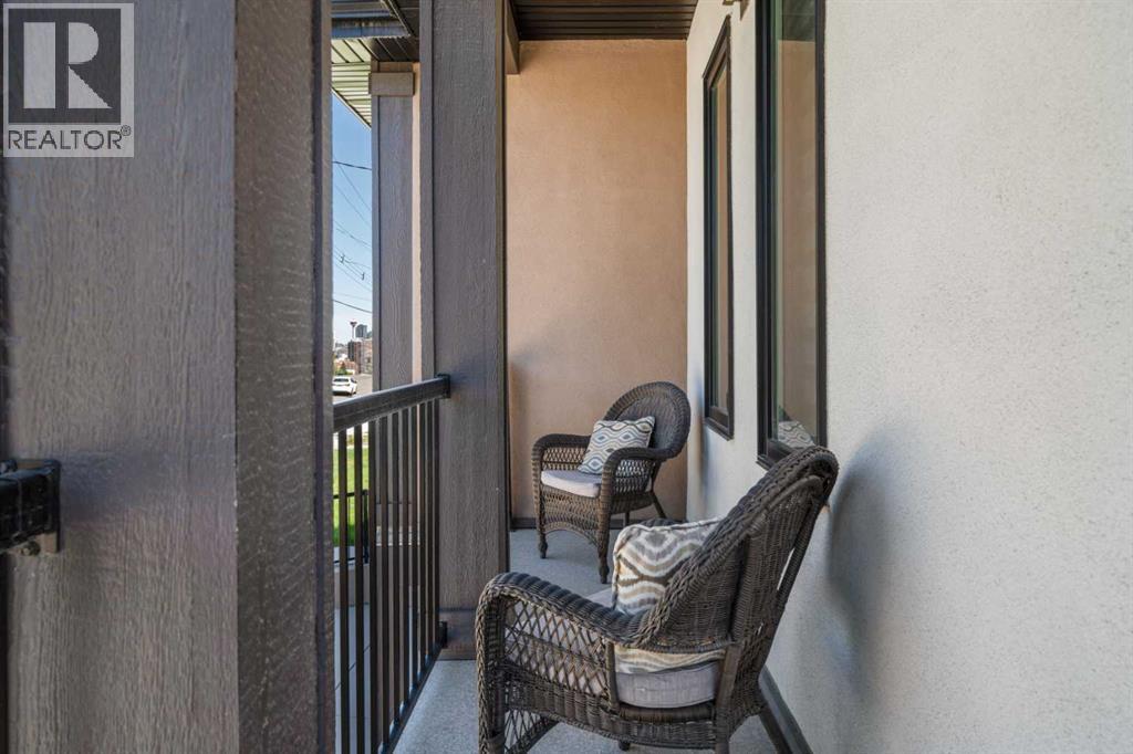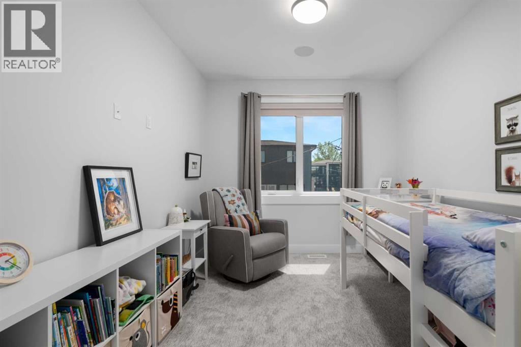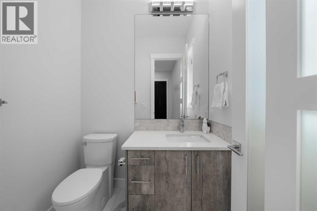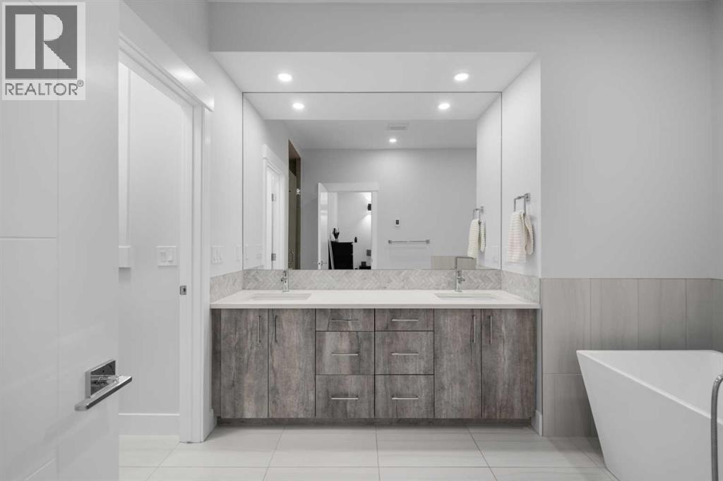 Discover modern living at its finest in this stunning two-storey semi-detached home, offering a rare under drive double attached garage and a stylish front veranda. Designed with exceptional attention to detail, this home boasts 4 bedrooms, 3.5 bathrooms, and air conditioning, ensuring year-round comfort. With heated floors in the primary ensuite, basement and even the garage giving you extra warmth. Step inside to a bright, open layout adorned with hardwood and tile flooring on the main level. The front office with French doors provides the perfect work-from-home space. The gourmet kitchen is a chef’s dream, featuring a large center island with quartz countertops, full-height high-gloss cabinets, a built-in stainless steel appliance package including a gas cooktop stove and chimney hood fan. Entertain effortlessly in the central dining room and rear living room, complete with a center gas fireplace with tile surround and built-ins, with seamless access to the backyard.Upstairs, retreat to the luxurious primary suite, boasting a private balcony with captivating city views. The spa-like 5-piece ensuite includes a dual vanity, a freestanding tub, and a custom glass shower, while the massive walk-in closet offers custom organizers and drawers. Two additional bedrooms, a 4-piece bathroom, and a convenient laundry room with a sink complete the upper level.The fully developed basement extends your living space with a cozy rec room, an additional bedroom, and a 4-piece bathroom—perfect for guests or family.The backyard is a true oasis, featuring an upper deck with stairs leading to a lower patio, a pergola, beautifully maintained gardens with a built-in planter, and a dedicated dog run.Situated on a corner lot next to an alley, this property shares only one attached neighbor and offers easy access to 17th Avenue and major roads, ensuring a quick commute in and out of the city. Make sure to click on the video tour icon! (id:51913)