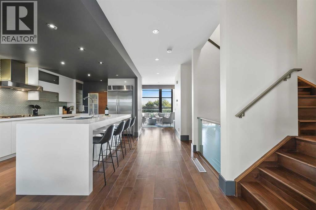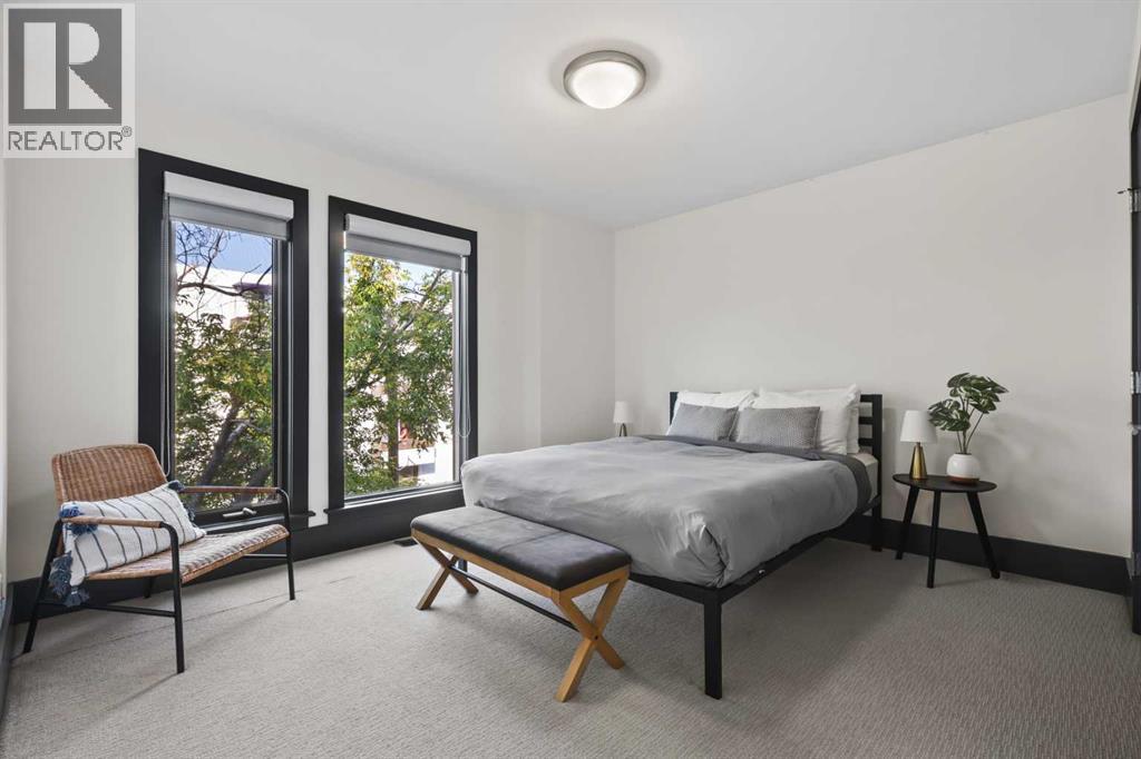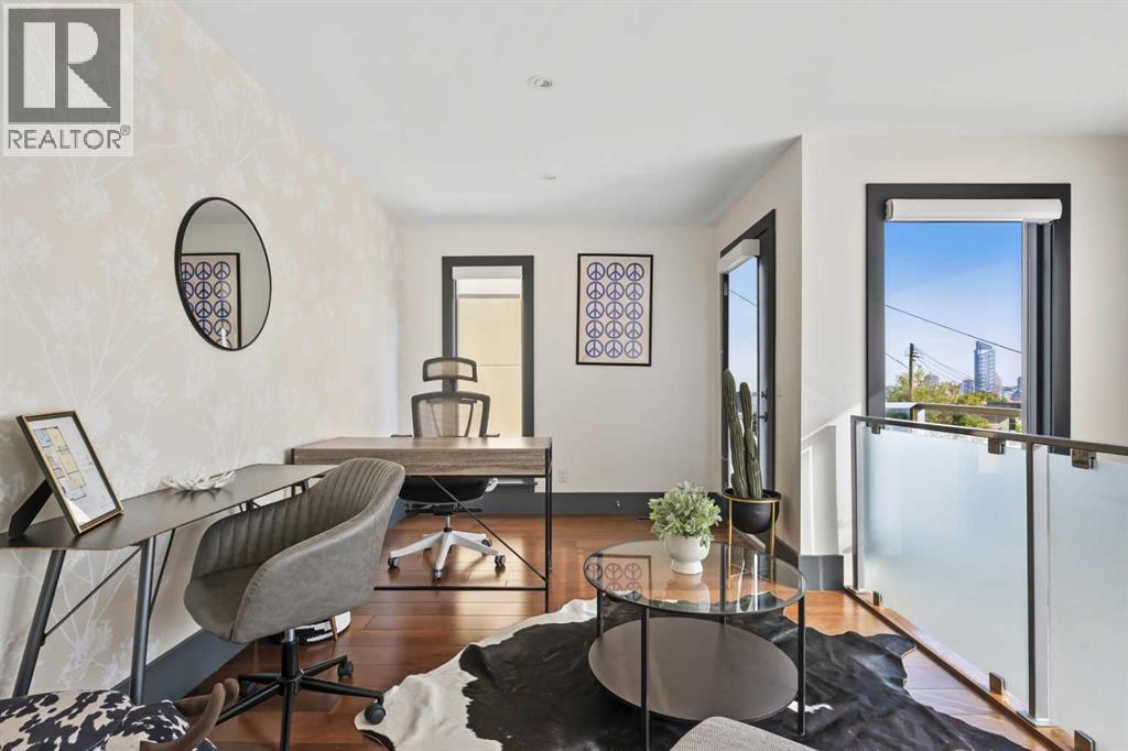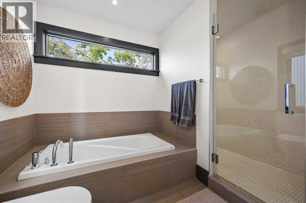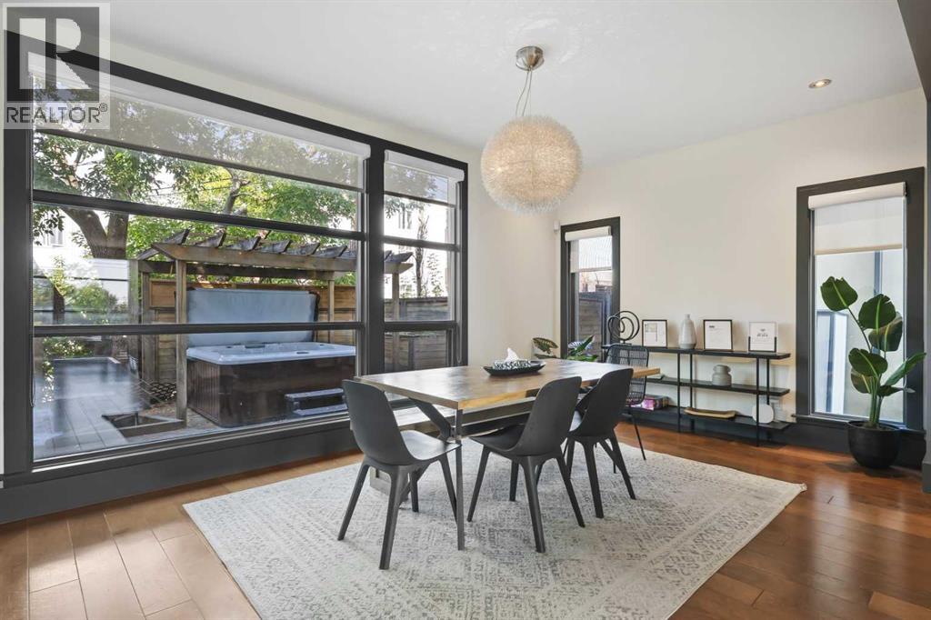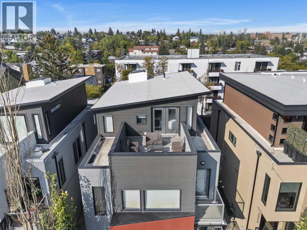 Nestled in the prestigious inner-city enclave of Bankview, this exceptional nearly 3,000 sqft architectural gem is a masterful blend of West Coast sophistication and timeless elegance with breathtaking views of the City Skyline from the Master Bedroom! As an established Airbnb property all furniture and furnishings are included, this property allows you to seamlessly take over the reins and continue reaping the rewards of this venture. Exquisite walnut millwork, soaring ceilings adorned with exposed beams, and expansive walls of glass frame captivating skyline views while flooding the home with natural light. The gourmet kitchen is a true showpiece, featuring premium stainless-steel appliances, a professional-grade gas range, an oversized quartz island with breakfast bar, and a seamless connection to the refined dining area—perfect for hosting in style. Beyond, your private outdoor sanctuary awaits, complete with a pergola-covered lounge, hot tub ($12k value and was craned into the backyard!), and lush mature landscaping, offering the ultimate in alfresco luxury. The second level showcases a dramatic vaulted-ceiling flex space, two generously appointed bedrooms, and a lavishly finished spa bath. Ascend to the top-floor primary suite, a serene retreat boasting an opulent ensuite, custom walk-in closet, and an exclusive terrace with unobstructed, glittering city views. The lower level offers yet another versatile living space with direct access to the double attached garage. A rare offering that transcends the ordinary, this residence is a statement in refined inner-city living for those who demand beauty, comfort, and distinction in equal measure. Book your private showing today! (id:51913)