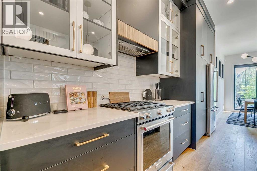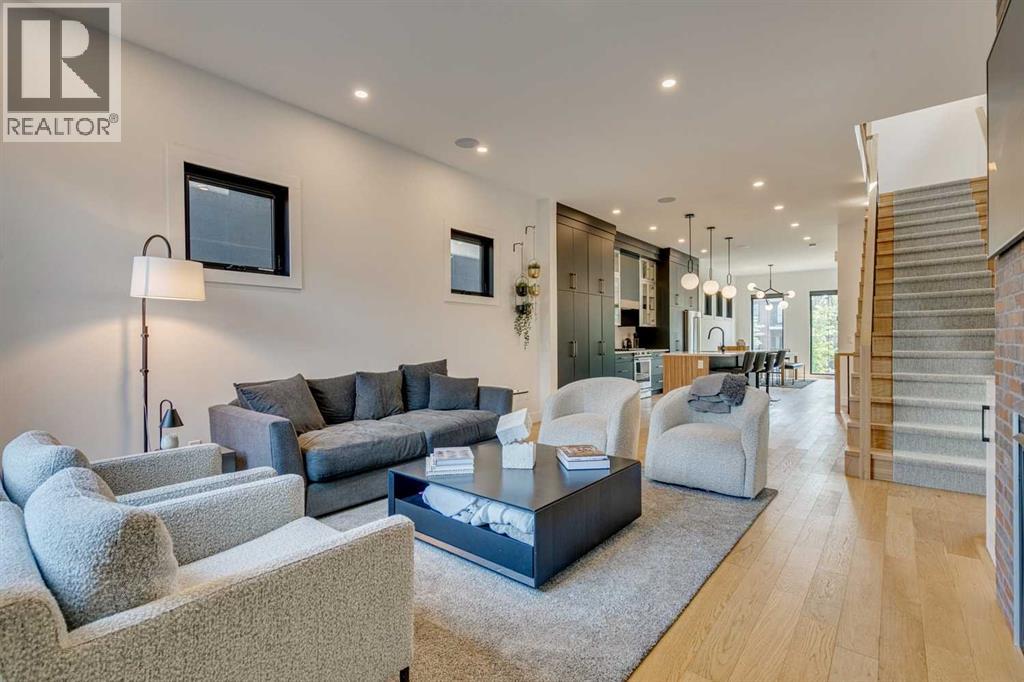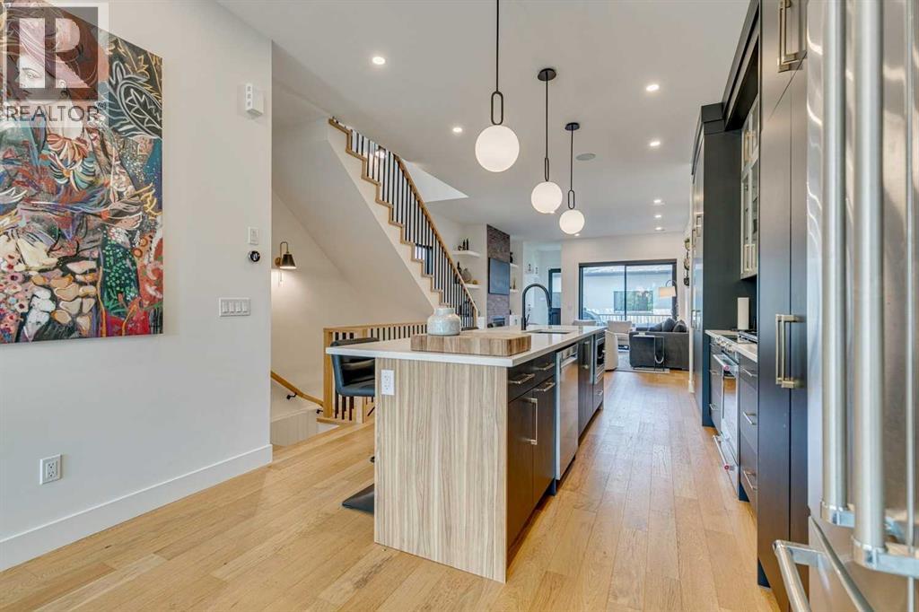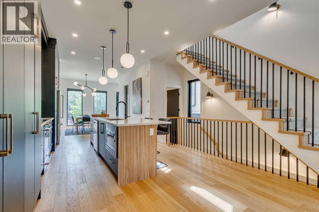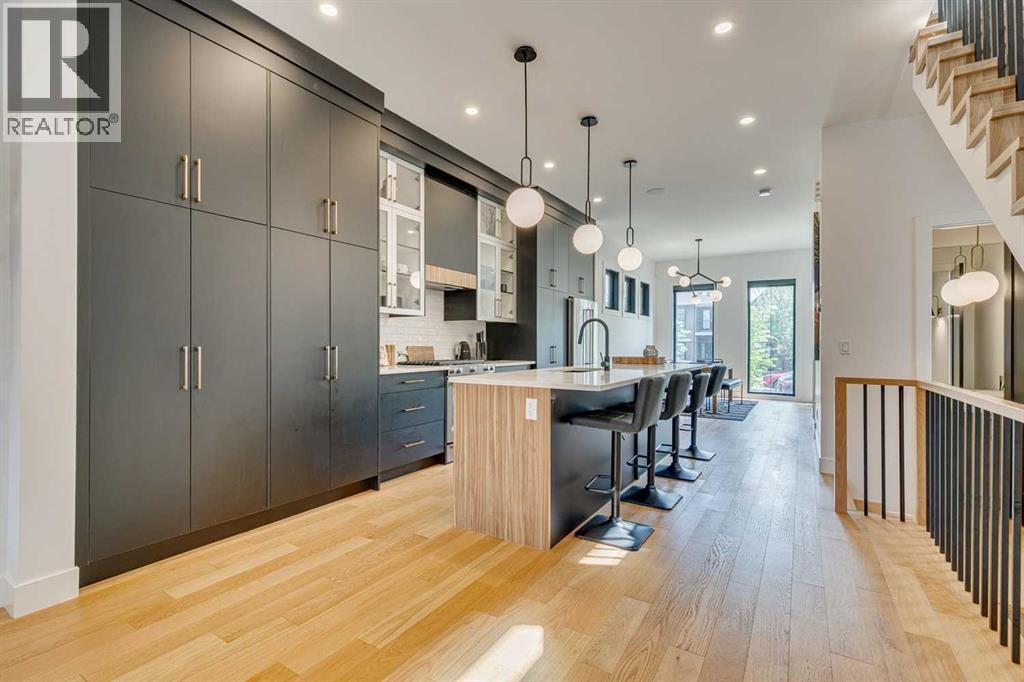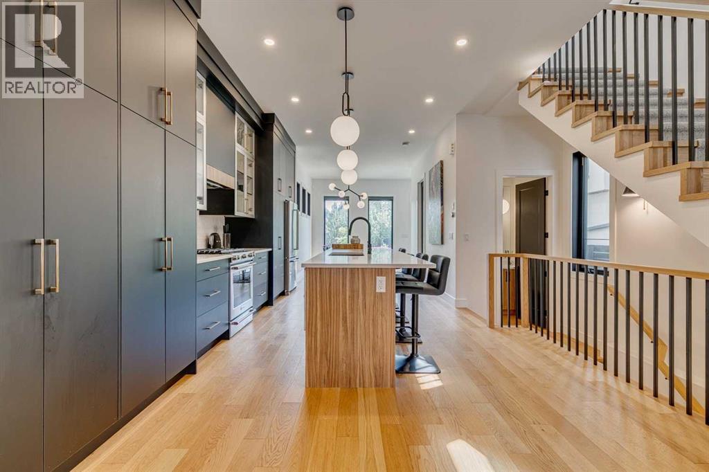 Why move to NYC when you can get the ‘feel’ right here in Killarney?!?! Modern luxury meets function in this stunning Detached Single Family 2 Storey home with over 2,600sqft of living space adorned with luxury touches throughout! Great curb appeal on a stunning street, this classic exterior has charm and grace, then the Top of the Line specs in the open concept Main make you feel relaxed and at home! Welcoming Foyer, super huge windows with black trim shed natural light throughout all day long. The Dining Room and kitchen flow seamlessly, oversized pantry is a lifesaver, allows the oversized island to be used for prep by the Chef and socializing when entertaining! With natural wide-planked Hardwood Floors throughout most of the Main and the 2nd Floor, 10 ft ceilings on the Main, 9 ft ceilings up, this home will please All! Custom kitchen cabinetry provides a modern yet industrial feel with glass doors on some cabinets, Top of the line Stainless Steel appliances, adorned with Quartz C-tops, as is the island. Such a nice mix of black, gold, tumbled brick and natural woods! Custom lighting throughout, be sure to look for the Art TV as well as the other attached TVs and built-in speakers – great for entertaining, setting the mood and just plain relaxing! The Living Room and Breakfast Nook are a perfect size, with large windows once again looking out to the private yard full width deck, complimented by a brick-faced Fireplace. The Mudroom is so smart, allowing space as the family comes in from the insulated to paint Double Garage off the rear paved lane. Turf grass is easy for cleanup for the family pup! The large deck has room to hang, Duradek finishing. Upper level offers three large Bedrooms, each with their own walk-in closets. The Primary Bedroom with coffered ceiling is luxurious, with a large walk-in closet, 6-piece Ensuite with the full spa feel: Double sinks, infloor heat, separate Soaker Tub and then oversized Steam shower with bench – very nice! Laundry up is also a good size, much needed! Lower level is fun, with wetbar and a wine cellar all ready to go! Media Room with attached TV & speaker, what a great area! Gym area with potential TV set up, 4th bedroom down is very large, again with walk-in closet! This home offers all you have been looking for, just move in! (id:51913)