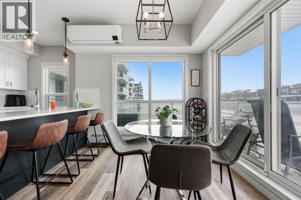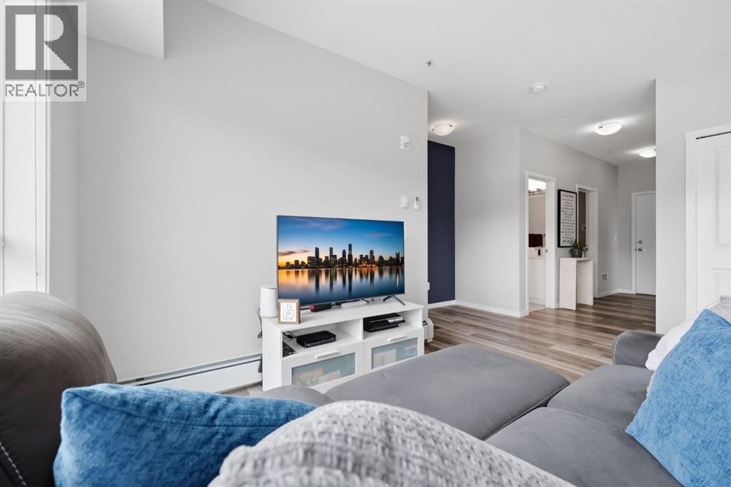 This bright second-floor unit faces south, bringing in beautiful natural sunlight all day long. With 983 sq ft, this well-designed condo offers 2 bedrooms and 2 full bathrooms, plus one titled heated underground parking stall and one storage locker — a practical bonus.Inside, you’ll appreciate the 9’ ceilings, luxury vinyl plank flooring, and the comfort of air conditioning. The kitchen is both stylish and functional, featuring an extended island, quartz countertops, and stainless steel appliances — perfect for everyday living or hosting friends and family.Step out from the dining area onto the balcony and enjoy the open views and sunshine. The primary bedroom includes a spacious walk-in closet and a 4-piece ensuite. The second bedroom and full bath are ideal for guests, kids, or a home office. There’s also full-size in-suite laundry and plenty of storage within the unit.This professionally managed, pet-friendly complex (with board approval) offers reasonable condo fees and a low-maintenance lifestyle.Located in the heart of Seton, you’re just a short walk to the YMCA, movie theatre, shopping, restaurants, walking paths, playgrounds, and more. Minutes away from South Health Campus and easy access to Deerfoot and Stoney TrailIf you’re looking for a sunny, move-in-ready home in an unbeatable location, this one checks all the boxes. (id:51913)