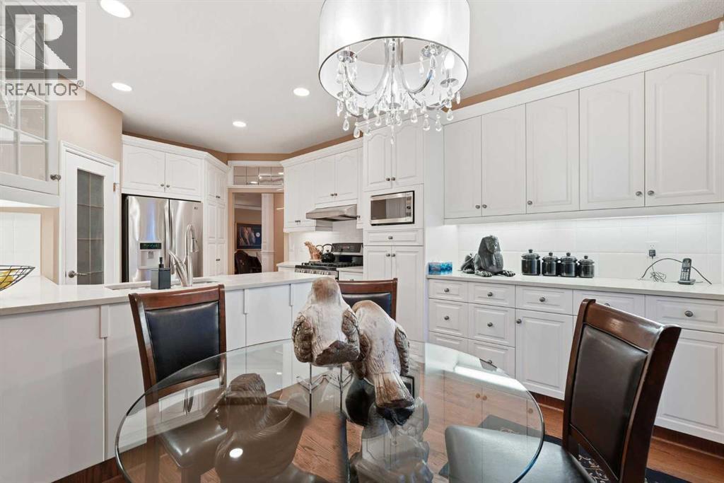 OPEN HOUSE SATURDAY, MARCH 7 FROM 2-4 & SUNDAY, MARCH 8 FROM 1-4!!. Inviting, fastidiously maintained and exceptionally spacious villa bungalow with a FULLY DEVELOPED WALK OUT BASEMENT, set within the exclusive gated community of The Brickburn in Patterson. Offering nearly 3,400 sq ft of beautifully maintained living space, this residence blends timeless elegance with thoughtful updates. The main level features rich hardwood floors, refined crown mouldings, and stylish lighting. A generous living room anchored by a classic feature fireplace flows seamlessly into the formal dining area—an ideal setting for hosting family and friends. The tastefully updated and reconfigured kitchen is appointed with newer quartz countertops, abundant cabinetry including a pantry, newer stainless steel appliances, and a charming breakfast nook. The serene primary suite provides direct access to the south-facing deck and includes dual walk in closets along with a private 4 piece ensuite complete with double sinks and an oversized shower. A dedicated office with custom built ins is tucked just off the foyer, creating an ideal work from home retreat. A 2 piece powder room and well appointed laundry room with sink and storage complete the main level. The expansive walk out basement is designed for entertaining, offering a spacious family room with fireplace, a full wet bar, a large recreation area, a comfortable bedroom, a 4 piece bath, and exceptional storage. Additional highlights include built in speakers, all Poly B has been removed from the home, a sunny south deck overlooking a tranquil greenspace, the convenience of a double attached garage, and the privacy and security of a beautifully maintained gated community. This lovely home is perfectly positioned near scenic Edworthy Park, shopping, schools, public transit, and provides effortless access to Bow Trail and Sarcee Trail. (id:51913)