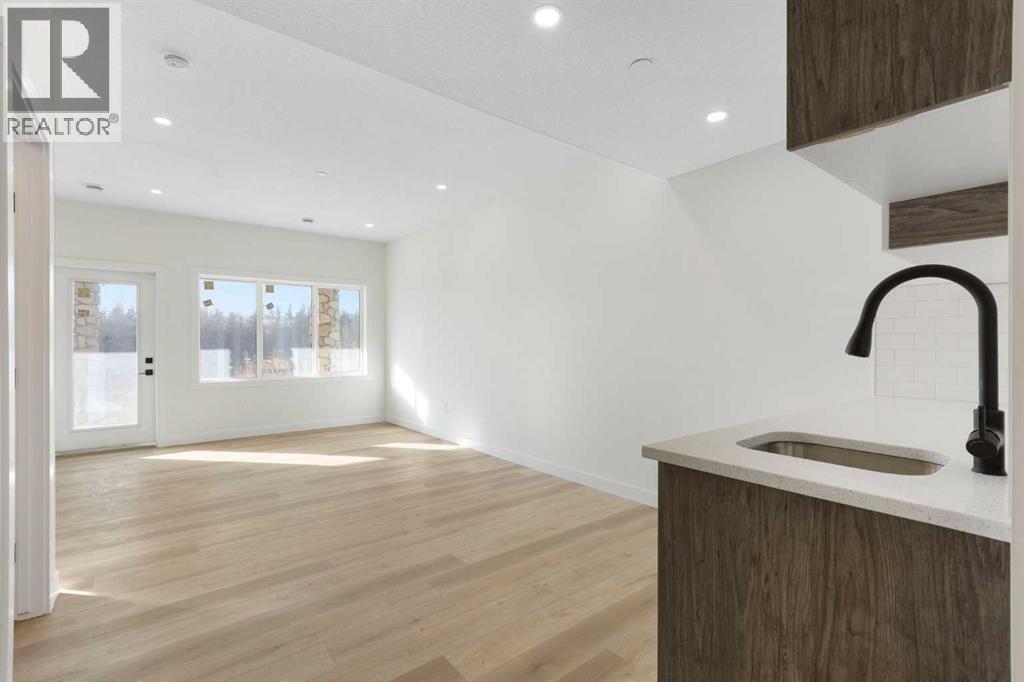 This 2025-built semi-detached bungalow offers a modern, open-concept layout with nearly 1,000 sq ft above grade plus a fully finished walk-out basement. The main floor features a bright kitchen with quartz countertops, island, pantry, and vinyl plank flooring, flowing seamlessly into the dining area and living room complete with an electric fireplace. The spacious primary bedroom includes a walk-in closet and 5-piece ensuite with double vanity. A convenient den and 2-piece bath complete the main level. Downstairs, the finished walk-out basement offers two additional bedrooms, a 3-piece bath, family room, and dedicated laundry area. Enjoy the double attached garage and driveway parking, along with a sloped backyard backing onto green space with no neighbours behind. Located in a golf course community with access to walking paths, playgrounds, recreation facilities, and more, with HOA amenities included. Enjoy the freedom of no water restrictions in this premier golf community - a significant advantage over Calgary, Chestermere, and Strathmore. **Property is being sold as-is, where-is, with no warranties or representations. All offers are subject to court approval and must be unconditional. Property has not received final occupancy approval, as permits and final grading remain outstanding. (id:51913)