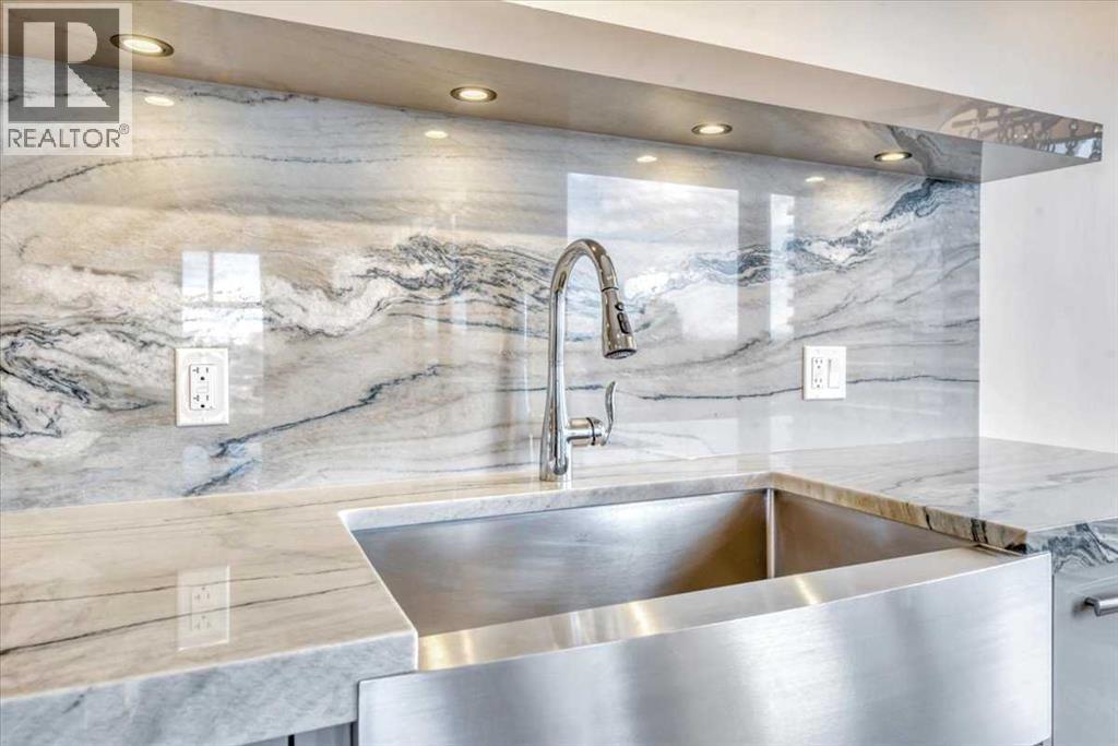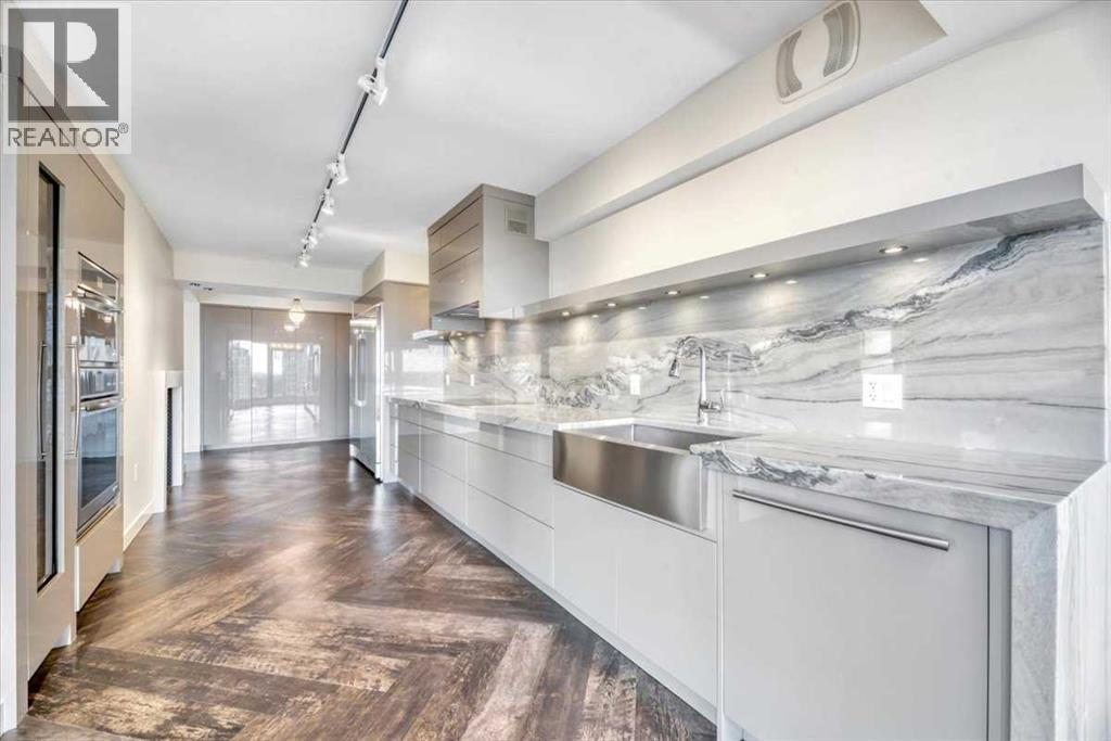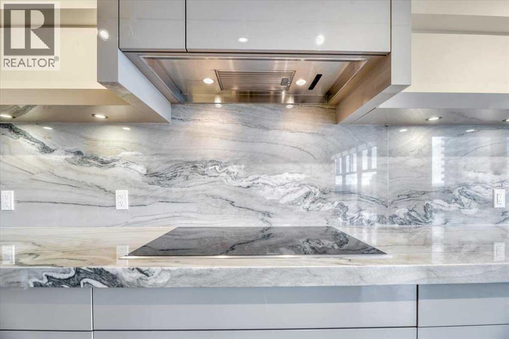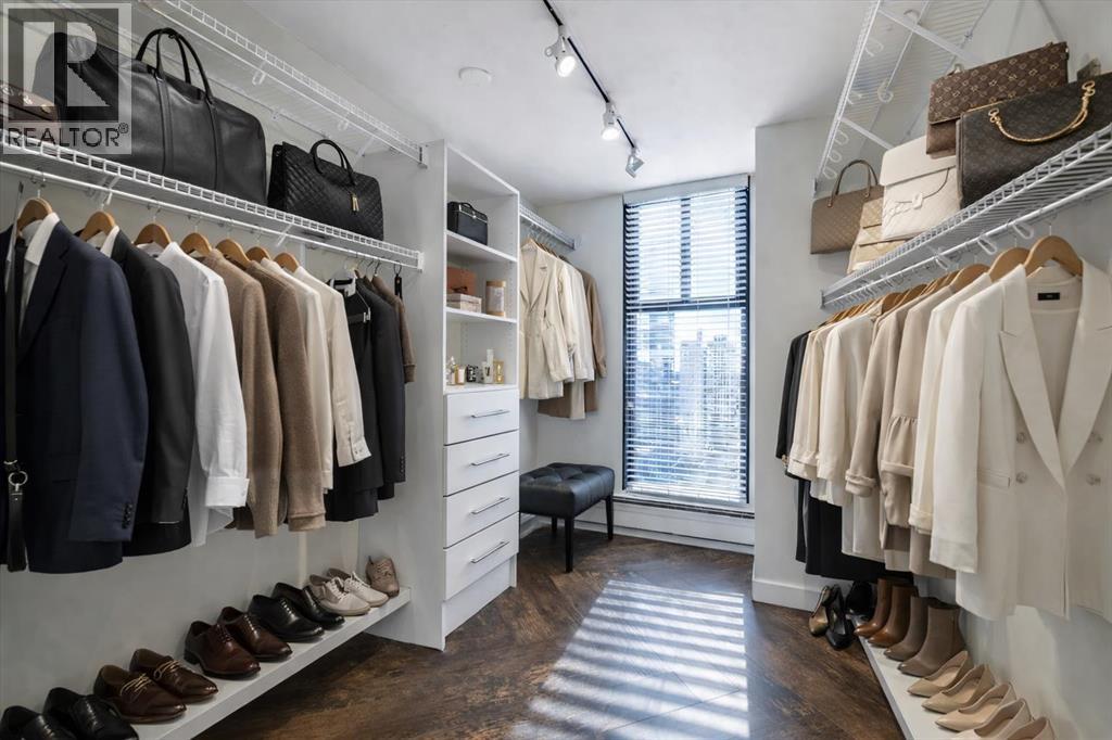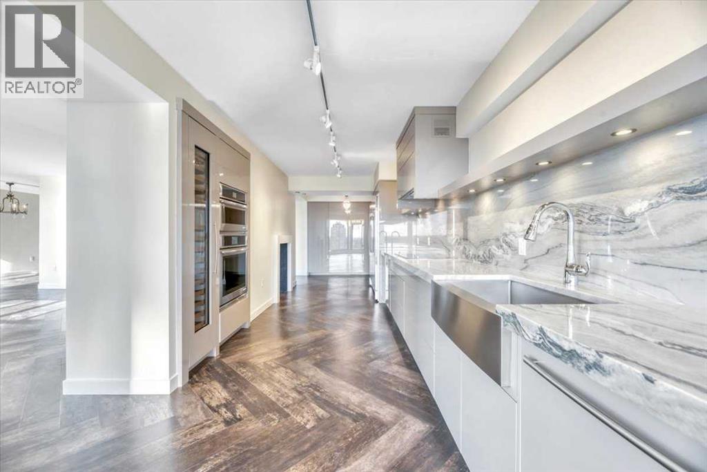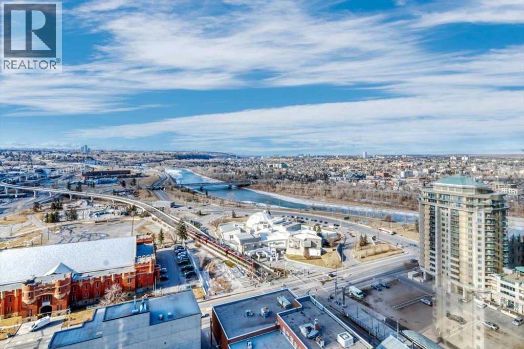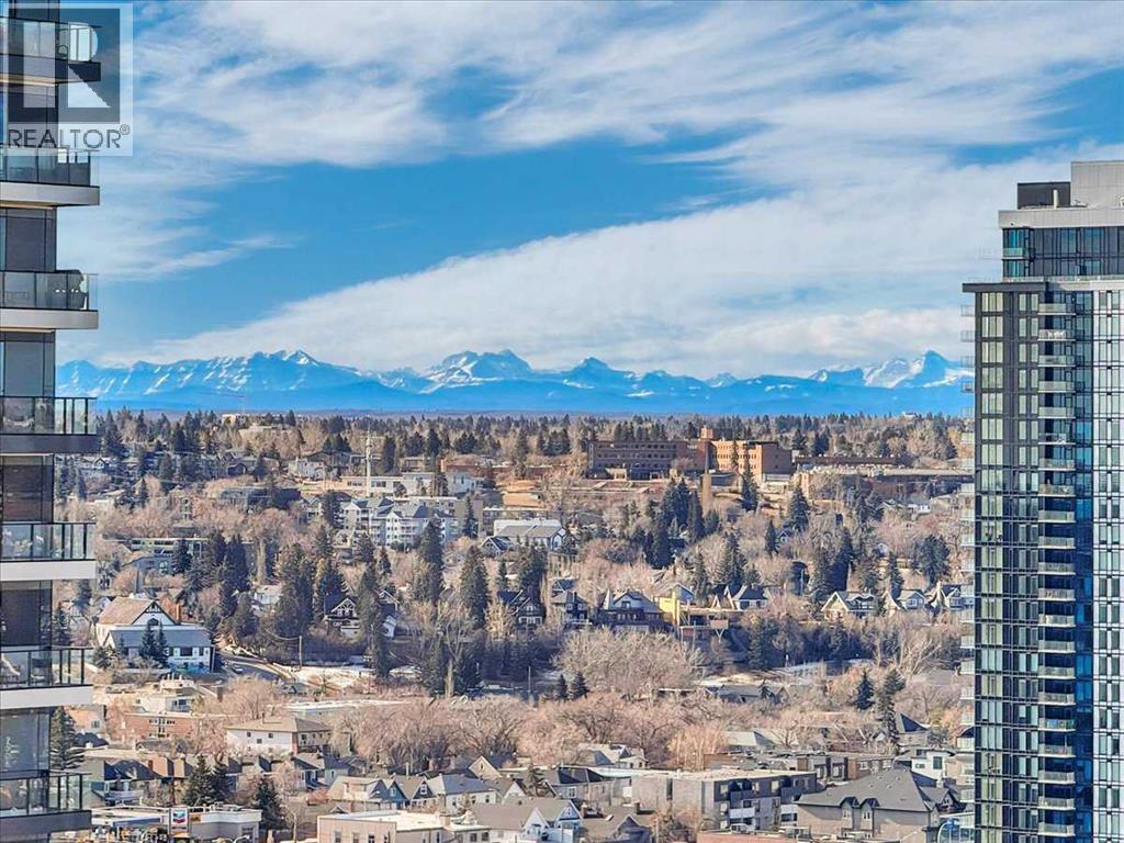 Welcome to a rare inner-city opportunity that simply does not come around often.Perched on the 24th floor of Westmount Place, this just over 2,400 square foot residence delivers a level of space, privacy, and sophistication rarely found in downtown Calgary. Floor-to-ceiling windows showcase unobstructed views of the Bow River, city skyline, and the Rocky Mountains, creating a breathtaking backdrop day and night.From the moment you enter, the quality is unmistakable. A total professional renovation has transformed this home into a refined, open-concept masterpiece. The welcoming foyer with custom built-ins sets the tone, while the living and dining areas are bathed in natural light and designed to entertain with ease while still offering comfort and privacy.The kitchen is nothing short of exceptional. High-end quartzite countertops, undermount sink, abundant cabinetry, premium stainless steel appliances, and a dedicated eating area make it as functional as it is beautiful. Whether hosting or enjoying a quiet morning coffee, this space delivers.The spacious primary suite is a true retreat, easily accommodating full-sized furnishings while offering stunning views. The luxurious five-piece ensuite features dual sinks, a custom glass shower, a deep soaker tub, and a large walk-in closet with built-in organizers.The glass-enclosed den is a standout feature, offering a refined and highly functional space ideal for today’s professional. Framed in glass and finished with privacy drapes, it delivers natural light while maintaining separation from the main living area. Thoughtfully designed with a walk-in closet, a dedicated office nook, and access to a private three-piece bathroom, this versatile room functions beautifully as a home office, guest retreat, or flexible living space—without compromising style or comfort.Luxury vinyl plank flooring flows throughout. In-suite laundry with high-end washer and dryer, a powder room, central air conditioning, and additiona l storage complete the home.Two side-by-side secured underground parking stalls on the P1 level add everyday convenience.Residents of Westmount Place enjoy a 24-hour concierge, newly renovated lobby, fitness facilities, racquetball and squash courts, dedicated change rooms, Luxer parcel storage, and a proactive board supported by an exceptionally healthy reserve fund.Ideally located on the quiet residential side of downtown, steps from the Bow River pathway system, the free ride LRT zone, grocery stores, restaurants, and cultural destinations.This is downtown luxury without compromise.Homes of this caliber are rarely offered.Now is the time to experience what Westmount Place has to offer.Ready to see it in person? This view is waiting. (id:51913)