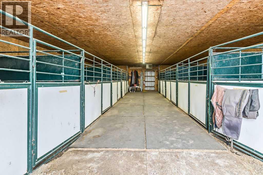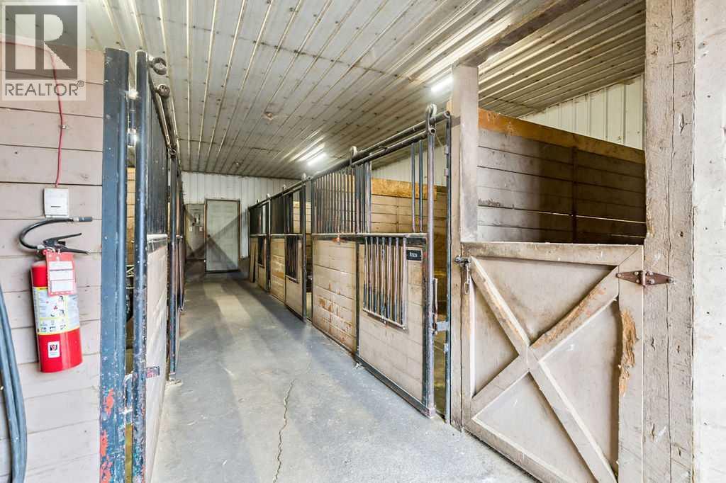 This turnkey, 23-stall equestrian facility features an indoor riding arena, 17 paddocks, and 2 homes, with all the infrastructure necessary to operate a successful boarding, training, and show/event business. The main home has been professionally renovated and offers 2,145 square feet above grade, plus a fully developed basement. The second home is a 2-bedroom mobile, perfect for extended family or a live-in caretaker or staff member. There are multiple structures on the property, including 3 buildings with indoor stalls, a shavings storage building, and equipment storage. The main barn is attached to the indoor riding arena and includes 6 stalls, 4 wash stalls, an office area, and a tack room equipped with individual lockers for boarding clients. A nicely elevated viewing lounge offers spectacular views of the arena. The outdoor paddocks are well equipped with steel rail fencing, automatic watering systems, and shelters. There is also space for a 200' x 200' outdoor riding arena, along with approximately 10 additional acres that can be used to suit your needs. Ideally located within a 10-minute drive of Calgary’s Stoney Trail Ring Road, this property offers exceptionally easy access for you, your clients, and your guests. There is so much more to appreciate about this impressive property. Book your private showing at your convenience. (id:51913)