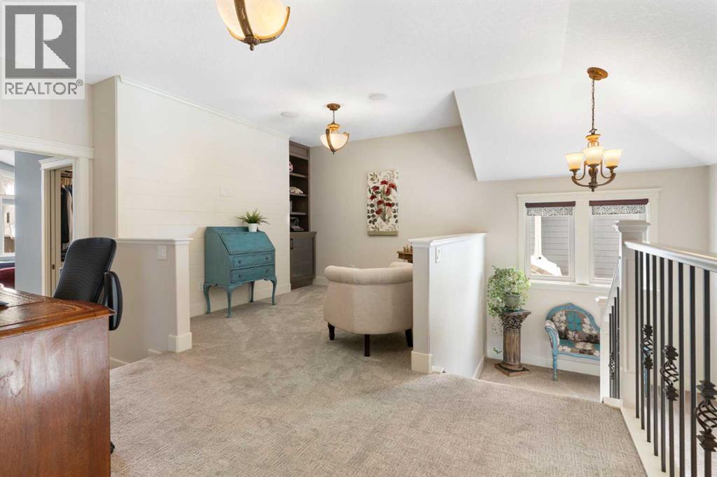 Hello, Gorgeous! Welcome to this beautifully renovated executive walkout home in the highly sought-after community of Coopers Crossing in Airdrie. Offering over 2,500sq ft. above grade plus a fully developed walkout basement, this home blends impressive architectural spaces with thoughtful custom finishes throughout. Step inside to a stunning entry featuring stacked stone accents, rustic beams, and an inviting sense of craftsmanship that continues throughout the home. The main floor includes a private office with glass French doors, perfect for working from home or flexible use as a dining space or additional bedroom. At the heart of the home is the dramatic great room with soaring 14-foot vaulted ceilings, arched windows, and a beautiful fireplace feature wall that fills the space with natural light from the west-facing backyard.The chef-inspired kitchen is designed for both everyday living and entertaining, featuring a large island, quartz countertops, professionally painted two-tone cabinetry, custom organizers, and a striking solid walnut hood fan. Premium appliances include KitchenAid, Bosch, Thermador, and MasterChef, along with a gas range, wall oven, beverage cooler, and walk-in pantry. Upstairs, a welcoming loft creates an additional living space for relaxing or family time. Two spacious bedrooms share a well-appointed bathroom, while the impressive primary retreat offers vaulted ceilings, custom wall detailing, and a luxurious ensuite with heated floors, double vanity, soaker tub & separate water closet. The fully developed walkout basement adds incredible flexibility with a gorgeous second full kitchen, large recreation area, full bathroom, wine/cool room, and a spacious additional bedroom or versatile flex room with built-in Murphy bed. With its high-end finishes and thoughtful layout, this level is ideal for entertaining or multi-generational living. Outdoor living is just as impressive with a west-facing backyard, a 300sq ft. Duradek balcony with glas s railing, natural gas line for BBQ, and a walkout patio below with additional gas connections and hot tub rough-in, plus two storage sheds. The beautifully landscaped yard features custom concrete work, mature trees and shrubs, and a 7-zone irrigation system. Completing the home is a triple attached garage plus shop area, with epoxy floors, forced-air heating, workshop wiring, EV/welder outlets, and extensive built-in storage. Located in one of Airdrie’s most desirable communities, close to parks, pathways, schools, and amenities, this exceptional home offers the perfect combination of space, luxury, and functionality. (id:51913)