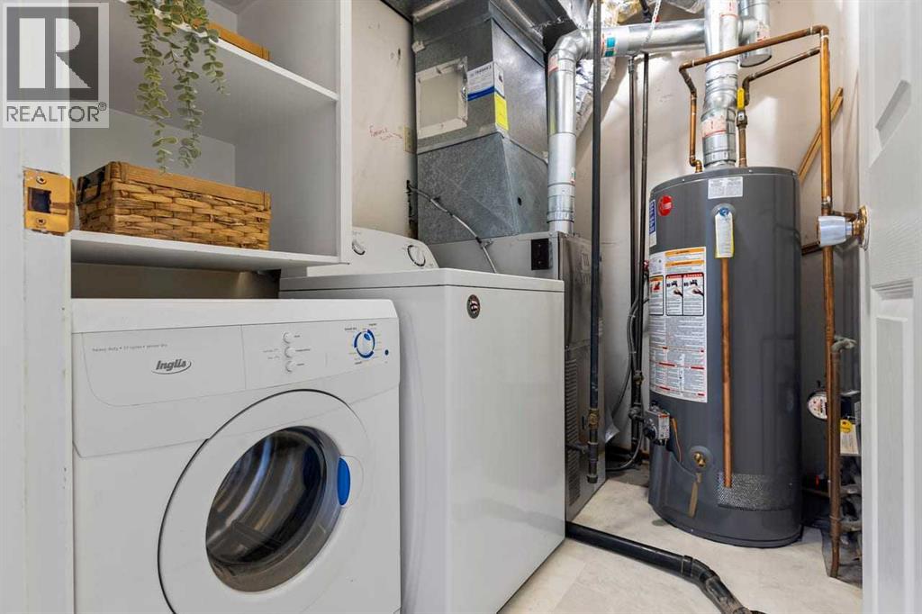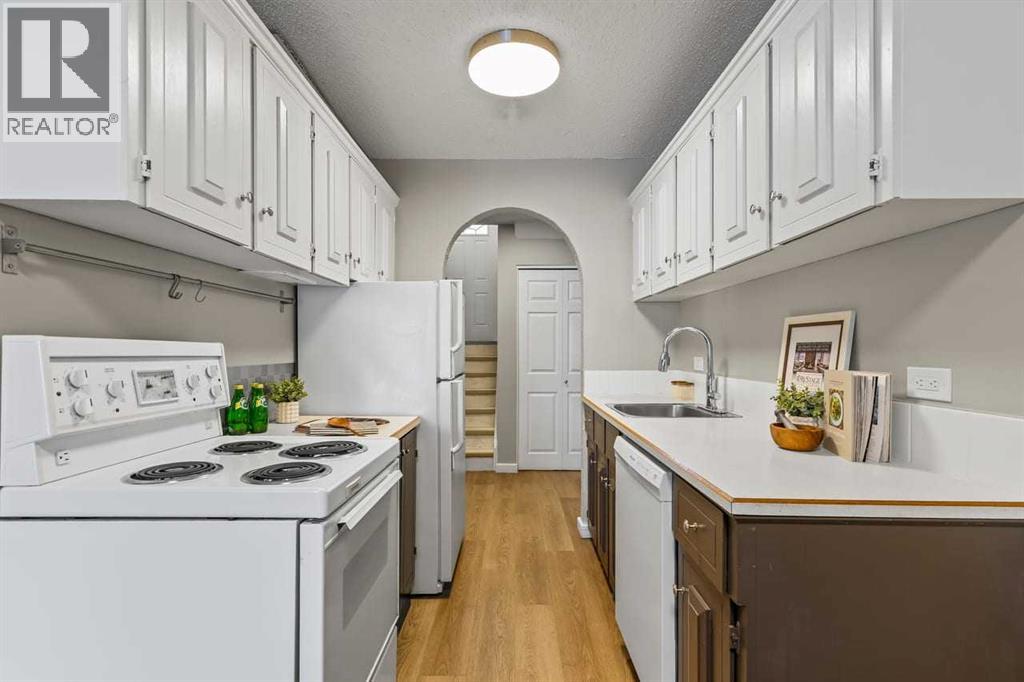Bungalow Charm Meets Modern Convenience in Palliser West. Experience the perfect blend of affordable living and low-maintenance style in this spacious one-bedroom bungalow townhouse. The open-concept layout is designed for comfort, featuring a kitchen that opens to a large dining area and a living room that fills with natural light from west-facing double patio doors. Step outside to your private patio with walkout access to serene green space and mature trees. Some of the upgrades and features include: newer flooring, light fixtures, professionally cleaned, in-suite laundry and storage, concrete construction for superior sound dampening and durability, and assigned parking right at your front door. Located in the quiet Palliser West complex, you are just minutes from South Glenmore Park’s miles of walking and bike paths, Glenmore Landing amenities, and major routes like Stoney Trail for easy city-wide access. This property offers affordability and a prime location. This unit is partially below grade. (id:51913)