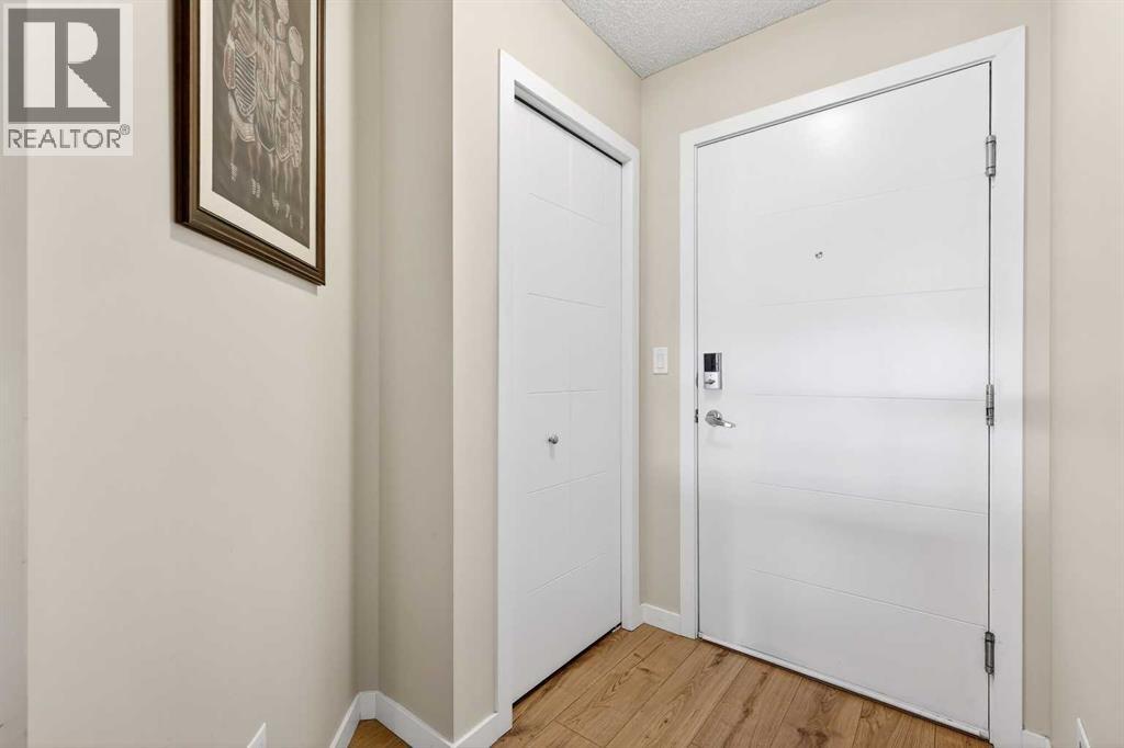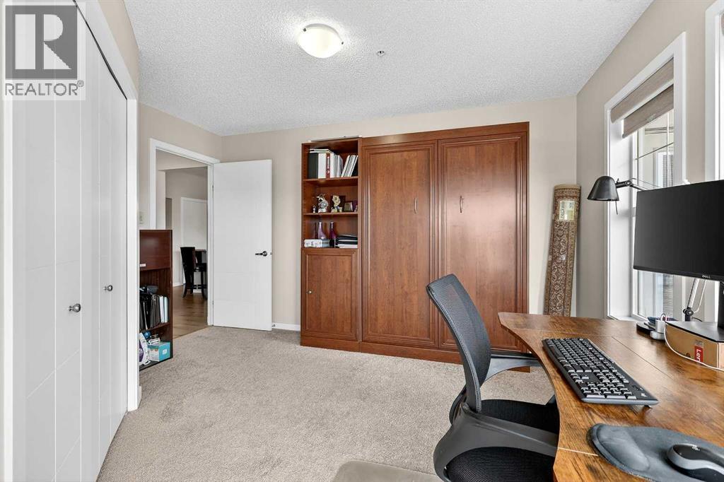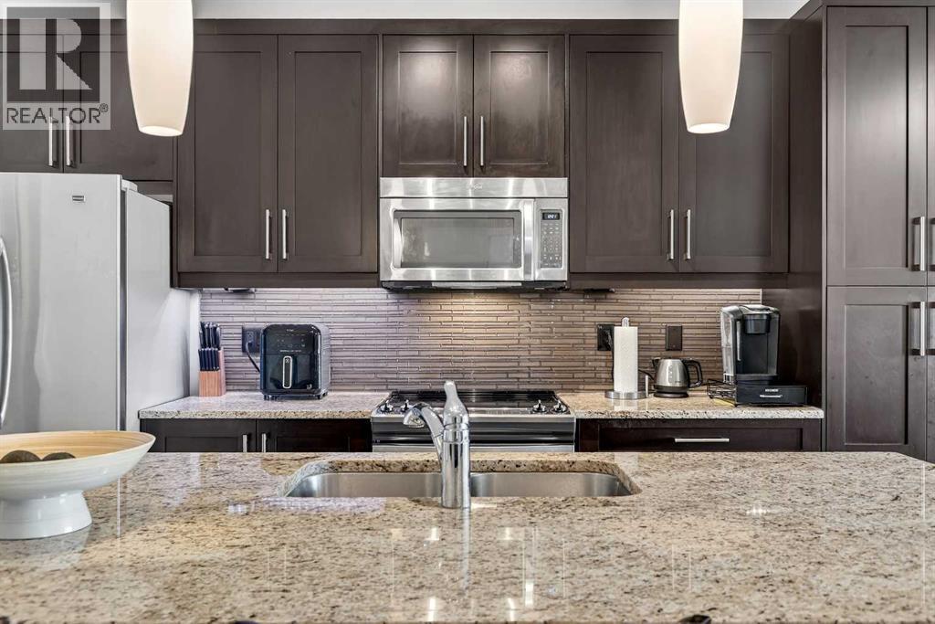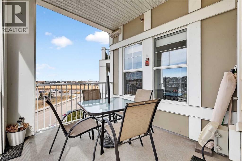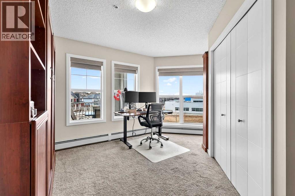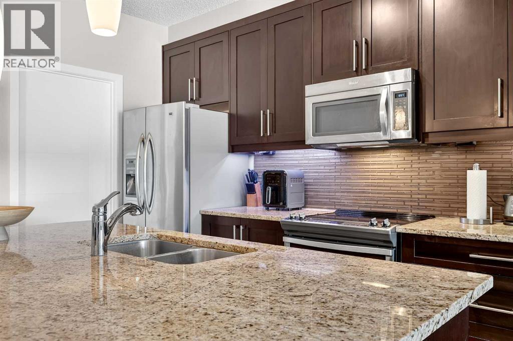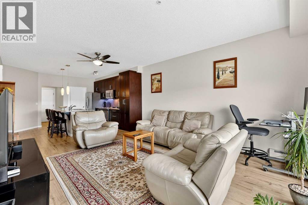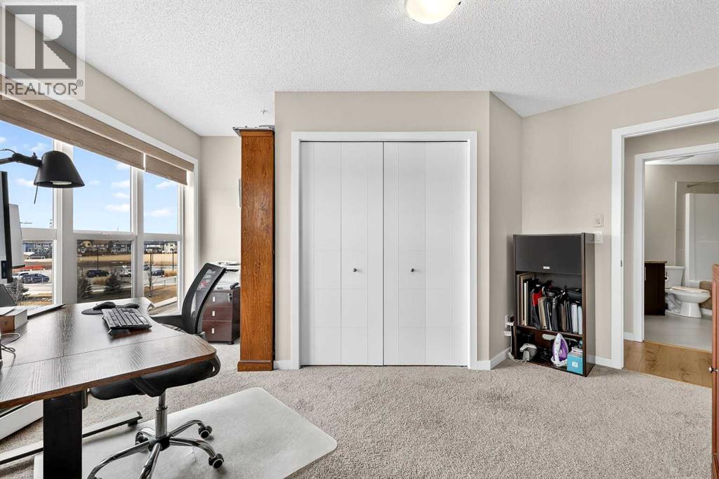 Welcome to Ebony in Mahogany—where elevated condo living meets the beauty and lifestyle of Calgary’s premier lake community. Perfectly positioned on the third floor with a coveted southwest exposure, this stunning and spacious apartment offers one of the largest floorplans in the complex, paired with an abundance of natural light and thoughtful design that sets it apart from the rest. From the moment you step inside, you are greeted by soaring ceilings just under 9 feet and oversized windows in both the living room and primary suite—creating a bright, open atmosphere that feels expansive and inviting. Bathed in warm evening sunlight, this home offers a truly special ambiance to be enjoyed throughout all four seasons. The kitchen is both stylish and functional, featuring rich dark cabinetry, elegant granite countertops, and a full stainless steel appliance package. A generous walk-in pantry provides exceptional storage and organization, while in-suite laundry adds everyday convenience. The kitchen flows seamlessly into the open-concept living and dining area, where warm-toned laminate flooring grounds the space and creates a cohesive, welcoming feel. The primary suite is a peaceful retreat, complete with a walk-through closet and a beautifully appointed 3-piece ensuite featuring granite countertops, timeless tile flooring, and an oversized walk-in shower with sleek glass doors. The second bedroom is equally impressive, offering a unique layout with a charming niche perfect for a reading nook, a Murphy bed for added versatility, and easy access to the 4-piece main bathroom—ideal for guests or family. This home is loaded with additional features that elevate everyday living, including air conditioning, a spacious private deck with BBQ gas line, and the rare bonus of two tandem parking stalls. Residents of Ebony also enjoy access to an on-site fitness facility, playground, visitor parking, and the added peace of mind that comes with nearby traffic-calming school zones. The location is simply unbeatable—just a few blocks from Mahogany’s private lake and beach club, and directly across the street from two schools. Enjoy endless opportunities for outdoor living with nearby parks, pathways, and playgrounds, along with convenient access to shopping, dining, and major routes in and out of the community. This is more than a condo—it’s a lifestyle defined by light, space, and the vibrant energy of lake living. If you’ve been searching for a home that offers exceptional design, incredible exposure, and everyday comfort in one of Calgary’s most sought-after communities, this is the one. (id:51913)