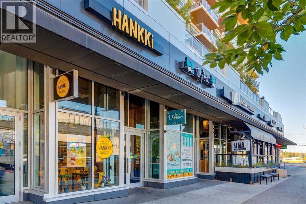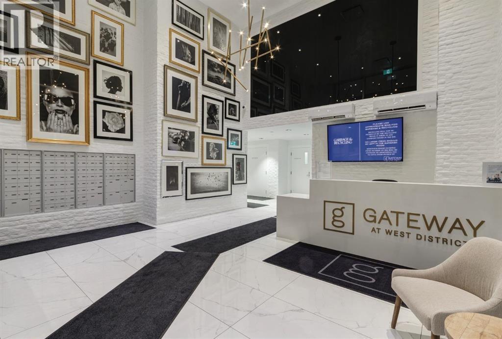 Located in the heart of West District, this bright south-facing two-bedroom, two-bathroom home offers an exceptional blend of privacy, natural light, and outdoor living. One of the few residences in the building with a generously sized patio, it backs onto the beautiful church park, offering views that will always remain open. The home offers 792 square feet of thoughtfully designed interior space, expanding to 962 square feet when including the private patio. The patio is perfect for morning coffee, summer dining, or entertaining, with plenty of room for a BBQ and outdoor seating. The open-concept living and dining areas are filled with natural light from floor-to-ceiling windows. High ceilings and refined painted finishes create a bright and inviting atmosphere. The chef-inspired kitchen features matte grey slate cabinetry with soft-close hardware, brushed gold accents, white quartz countertops, a coordinating backsplash, and premium appliances, including a Whirlpool five-burner cooktop and oven, Elica range hood, and Fisher & Paykel integrated fridge and freezer. The primary suite is a serene retreat, with large windows that fill the room with natural light. The walk-in closet provides ample storage, and the beautifully finished three-piece ensuite features quartz countertops, modern fixtures, and spa-inspired finishes. The second bedroom is spacious and versatile, ideal as a guest room, home office, or creative space, with convenient access to the four-piece bathroom. Additional highlights include an oversized washer and dryer and ample storage throughout. Residents enjoy access to premium amenities, including a rooftop patio, private owner’s lounge, secure underground visitor parking, bike storage, EV charging stations, and concierge services. Ideally located in Calgary’s West District, you are steps from parks, walking paths, boutique shops, cafés, and dining options. A rare opportunity to secure a south-facing home with beautiful views, elevated outdoor livin g, and exceptional value. Schedule your private viewing today! (id:51913)