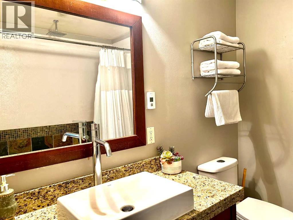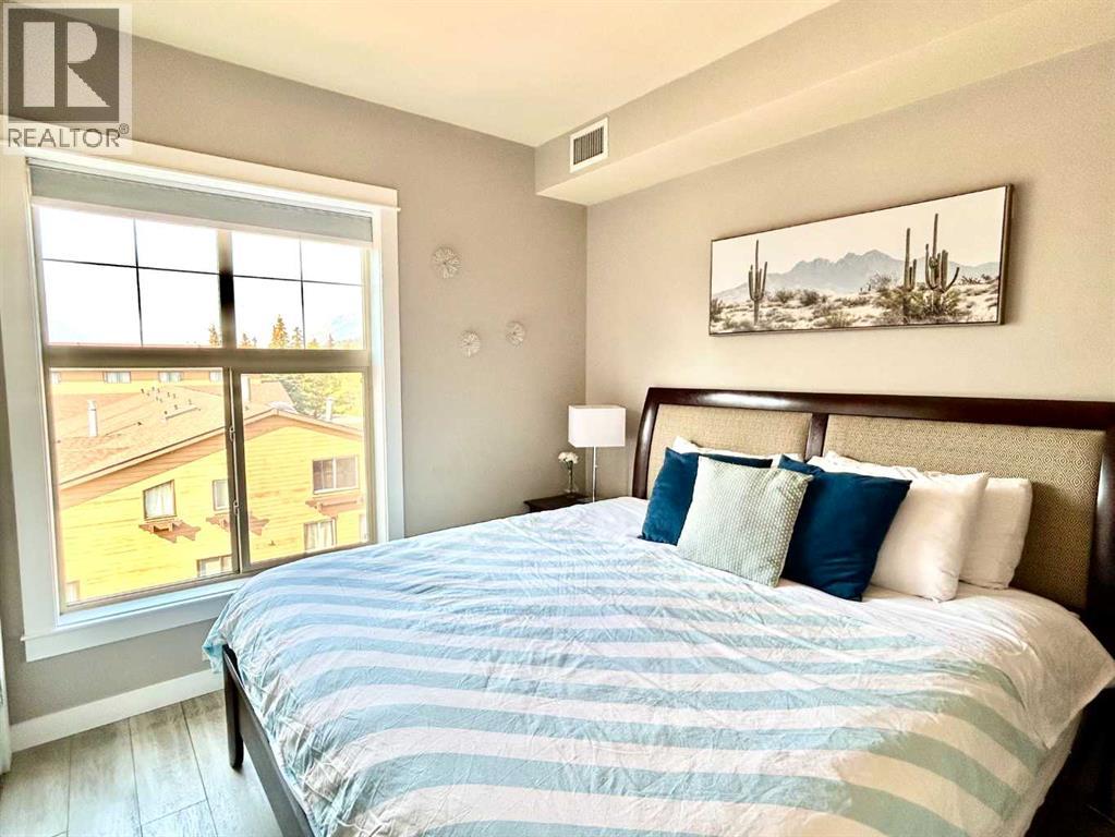 270 Degree Mountain view. Top Floor and end unit, This Hotel Condo zoning, offers you an great investment. This fully furnished 2-bedroom, 2-bathroom condo is designed for comfort and convenience, with an open-concept layout that seamlessly connects the spacious kitchen, and living room. A cozy fireplace creates the ideal setting to relax after a day of exploring the Rockies. Both bedrooms are generously sized, each featuring a king bed, and with the addition of a sofa bed, the property comfortably sleeps up to six guests. Step onto your private south-facing deck to enjoy sweeping views of the iconic mountain peaks, an ideal spot for morning coffee or evening barbecues. Additional highlights include in-suite laundry, ample storage, two outdoor hot tubs, a fitness room, and secure heated underground parking. With its prime location, you’ll be just steps from downtown Canmore’s shops, restaurants, cafes, and trail network, making it easy to enjoy everything this vibrant mountain community has to offer. This is a rare opportunity to own a mountain retreat with both lifestyle and investment benefits. (id:51913)
