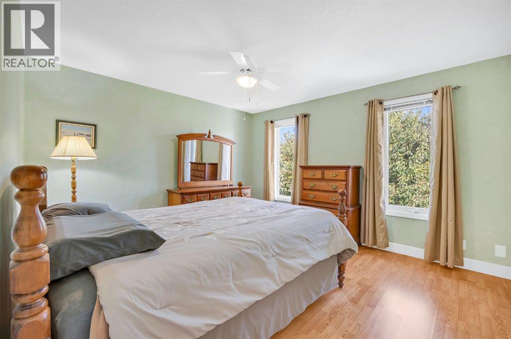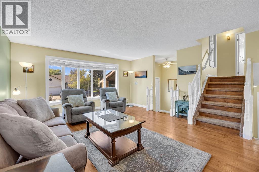 Pride of ownership resonates throughout this ORIGINAL OWNER occupied home in the COVETED community of RIDGEGATE. BACKING onto NOSE CREEK PARK, this absolutely stunning 4 level split will immediately capture your attention with its breathtaking front curb appeal. An immaculately manicured front lawn with shrubs & foliage. Canexel composite siding is bold, beautiful & ready for Alberta's changing weather conditions. The accent brick offers a sophisticated focal point to the home while the RUBBER drive pad is not only beautiful but offers a child friendly buffer for those day to day spills. This home offers over 2600 sq ft of tl developed living space with a total of 4 bedrooms above grade. Sunshine floods through the large front bay & rear windows. A substantial sized living room with beautiful hardwood floors ushering you to a LARGE bright kitchen. Ample counter space, cabinets & pantry. Updated appliances, countertops, sink, garburator & fixtures. The kitchen is open to a spacious dining area. The rear door off the dining room leads to your large low maintenance deck & fully fenced back yard. Stunning mature trees, shrubs & flowers offer a balance of beauty & privacy in this meticulously maintained OASIS. Exceptional outside storage under the deck, corner shed & garden enclosure. Back inside the house you will note a large master with 3 pc ensuite & SKYLIGHT. An exceptional sized 2nd bed, comfortable sized 3rd bed & updated 4 pc main bath with jetted tub & SKYLIGHT. The 3rd level WALK OUT is ideal for someone with a DAYHOME/HOME BASED BUSINESS & is host to the 4th bed, a large family room with stone faced gas FP, 2 pc bath & washer & dryer. The basement offers a generous sized family room, Study/Den/Wine Cellar, 3 pc bath, & Storage room. The 2 lower level rooms could be converted to beds to suit the needs of a large family while the 3rd LEVEL WALKOUT could make this home a candidate to SUITE subject to city approval & permitting. Additional storage adjacent the u tility room. The single oversized attached garage is fully insulated, drywalled & includes a plug in heater. Additional features of this home include all newer windows & doors on the top 3 levels. Triple pain windows on the main rear of the home & built in blinds on the back door. Roof , Canexel siding & furnace app 2014. Hot water tank app 2020. Upgraded attic insulation. Garburator app 2020.. Water softener. Vacu Flo & attachments. Phantom screen at front door. A/C app 2022. Underground sprinklers in the backyard. This GEM is surrounded by the tranquil beauty of NOSE CREEK PARK which is host to various community events including the Christmas Light Celebration. Nose Creek Park is home to Airdrie's largest playground, fishing ponds, pickle ball courts & various trails. Walking distance to the new public library, grocery store, gym & other amenities. Nearby schools & quick access to the highway. (id:51913)