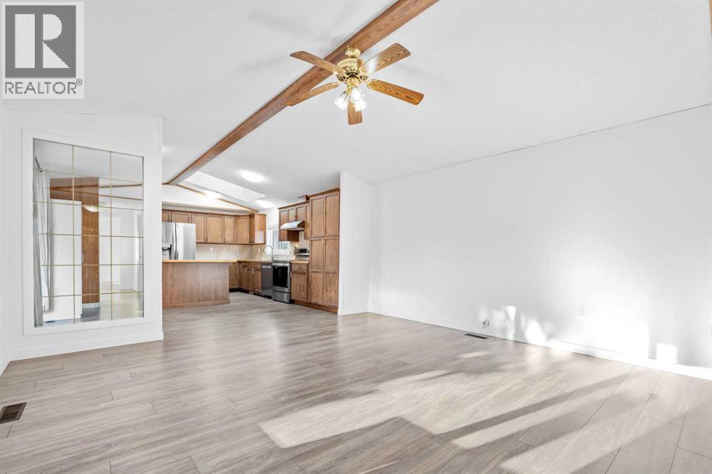 Welcome to Greenwood Village. This 3 bed, 2 bath, 1,221 sf mobile home is truly move-in ready. All upgrades and updates have been done and you will love the bright, open floorplan. It has been meticulously maintained, presenting in excellent condition. Upon arrival, you will notice the double carport, providing parking for up to four vehicles. The spacious, fully fenced yard is adjacent to a playground, one of several within Greenwood Village. The well-appointed entry leads to two bedrooms and a bathroom at the front of the home, a generous living room with vaulted, beamed ceiling, large windows, and laminate flooring throughout. The kitchen benefits from a skylight that fills the space with natural light, ample cabinetry, a sizable island offering extra storage, and patio doors opening onto a large deck. The primary bedroom includes a four-piece ensuite, walk-in closet, and accommodates a king-size bed. The additional bedrooms are also spacious, and the front bedroom offers a Jack-and-Jill three-piece ensuite. A separate laundry room with a sink adds further convenience. Recent improvements include a new Furnace and Central Air Conditioning (Fall 2023), a Stainless Steel appliance package (Fall 2022) featuring a double-door refrigerator with bottom-mounted freezer, water, and ice dispenser, as well as a newer hot water tank, Vacu-Flo system, and a recently constructed double carport. The kitchen patio doors lead to a substantial deck equipped with a Weber BBQ. The home is conveniently located minutes from Greenwich Village, renowned for its Farmers Market West, and provides easy access to Stoney Trail Ring Road for citywide travel and Highway 1 for trips to the mountains. The monthly lease fee of $1,375 covers water, sewer, garbage pickup, and snow removal. Greenwood Village offers a clubhouse with activities throughout the year and is serviced by Calgary Transit and a school bus route. Lease approval is required, and pets are permitted upon approval. (id:51913)