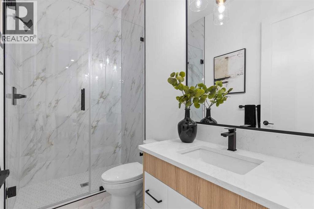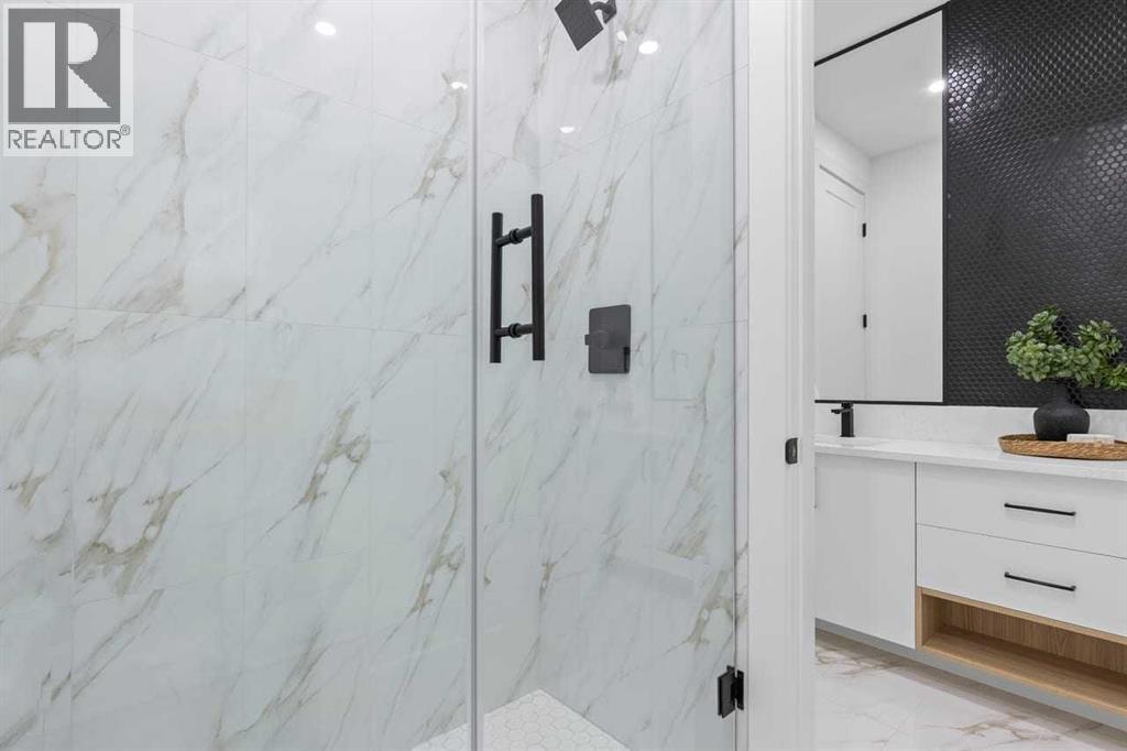 Set within the prestigious community of Patterson Heights –The Point - this exceptional luxury residence offers over 5,000 sq. ft. of elevated living designed for comfort and functionality. From the moment you arrive, the home makes a statement with a grand entryway highlighted by a floor-to-ceiling custom closet. Just off the entrance, a well-appointed mudroom features a walk-in closet and a striking full-height wall unit, providing direct access to the oversized double garage. The garage is fully outfitted with EV charging outlets, a gas heater rough-in, and hot and cold water taps. Completing this level is a full bathroom with quartz countertops and a floor-to-ceiling glass shower. The main living space is defined by 10-foot ceilings and wide vinyl plank flooring, creating a clean, modern flow throughout. The living room offers warmth and style with a custom wall unit and ambient LED lighting, while the dedicated bar area, complete with a bar fridge, is ideal for hosting. A private gym with recessed lighting, floating shelving, and generous space for equipment. A striking open-riser staircase and a private elevator connect all 3 levels and lead to the stunning 2nd floor. Here, you’ll find a bright home office overlooking a large window, a sleek powder room, and a refined dining area anchored by a built-in LED-lit wall feature. Glass sliding doors open to a large East facing balcony, while the family room impresses with a coffered ceiling, art-block feature wall, and gas fireplace. Additional sliding doors lead to a fully landscaped backyard complemented by a composite rear deck with a gas line, backing onto peaceful green space, where nature and wildlife create a serene setting. The chef-inspired kitchen anchors the home with a quartz waterfall island, hidden cabinetry, two-tone modern cabinets, and high-end stainless steel appliances. A fully equipped spice kitchen allows for effortless entertaining, a modern breakfast nook with a statement light fixture complet es the space. The upper level is a private sanctuary, beginning with a grand primary suite set behind French doors. Enjoy a private balcony overlooking green space, a juice bar, in-floor heated ensuite, and a spa-style bathroom featuring a freestanding tub and a glass-enclosed steam shower with rainfall head and granite seating. Two additional bedrooms share a Jack & Jill bathroom with quartz countertops, while a fourth bedroom offers its own full bath and walk-in closet. A thoughtfully finished laundry room enhances everyday convenience. A bonus room with downtown views and an additional wall unit completes the upper level, which continues the home’s open feel with 9-foot ceilings throughout. Additional highlights: basement under-slab heating rough-in, a 75-gallon hot water tank, two high-efficiency furnaces, two central A/C units, and extensive built-in cabinetry. Don't miss the opportunity to own this exceptional luxury home. (id:51913)
