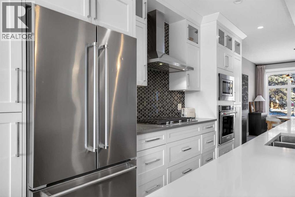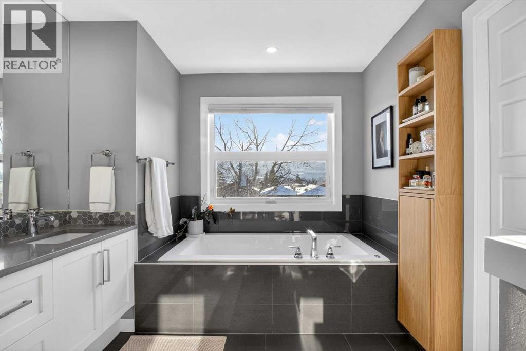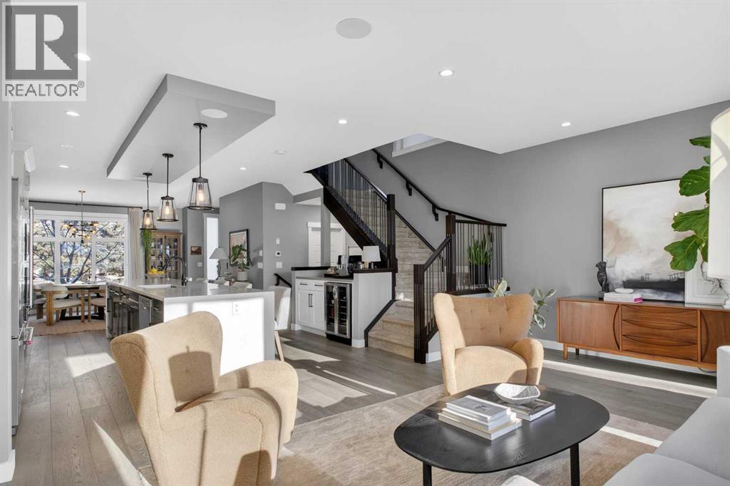 ***OPEN HOUSE: Saturday, February 28th 12:00 - 2:00 PM*** Exceptionally maintained and thoughtfully upgraded, this refined residence in Montgomery captures beautiful VALLEY VIEWS from both the living room and primary bedroom. A bright OPEN-CONCEPT MAIN FLOOR creates seamless flow for everyday living and entertaining, enhanced by HARDWOOD FLOORING, DESIGNER LIGHTING, and carefully selected finishes throughout. The kitchen anchors the space with an oversized WATERFALL QUARTZ ISLAND offering generous seating, FLOOR-TO-CEILING CABINETRY for exceptional storage, and a KITCHENAID STAINLESS STEEL APPLIANCE PACKAGE including a GAS COOKTOP, BUILT-IN WALL OVEN, and microwave. A full-height wall pantry with pullout drawers keeps everything organized, while a dedicated BEVERAGE STATION with WINE FRIDGE makes hosting effortless. The living room spans the full width of the home and invites connection, featuring a GAS FIREPLACE flanked by RECESSED SHELVING and patio sliders that open to a FULL-WIDTH BALCONY, extending your living space outdoors and maximizing the SW EXPOSURE. A tucked-away powder room completes the level. Upstairs, a soaring CATHEDRAL CEILING enhances the hallway’s sense of space, while a functional laundry room with cabinetry, utility sink, and NEW WASHER AND DRYER streamlines daily routines. Two spacious secondary bedrooms feature OVERSIZED WINDOWS for abundant natural light and flexible layouts, complemented by a 4pc main bath. The primary bedroom offers a calming retreat with a COFFERED CEILING, WALK-IN CLOSET with custom MILLWORK SHELVING AND DRAWERS, and a spa-inspired 5PC ENSUITE with OVERSIZED SHOWER and HEATED FLOORING for everyday comfort. The WALKOUT BASEMENT connects indoor and outdoor living and is designed for entertaining, complete with a rec room featuring BUILT-IN ENTERTAINMENT CABINETRY and a WET BAR with BEVERAGE CENTRE for easy refreshment access. A 4pc bath and fourth bedroom with included Ikea wardrobe add versatility for guests or home offic e needs. Outdoors, LOW-MAINTENANCE LANDSCAPING creates privacy without the upkeep of a traditional lawn, highlighted by DECORATIVE GRAVEL, RAISED GARDEN BEDS, a central PATIO framed by CONCRETE PAVERS, and a COVERED PATIO off the walkout level for sheltered relaxation. Additional UPGRADES include BUILT-IN SPEAKERS, AIR CONDITIONING, FLOOR-TO-CEILING WINDOW DRAPES, and BLACKOUT WINDOW COVERINGS in bedrooms. Parking is provided by a DOUBLE DETACHED GARAGE that is INSULATED, DRYWALLED, and EV CHARGER READY, accessed via a PAVED BACK LANE. Walking distance to BOW RIVER PATHWAYS and SHOULDICE PARK, this location also offers quick access to MARKET MALL, the UNIVERSITY OF CALGARY, FOOTHILLS MEDICAL CENTRE, ALBERTA CHILDREN’S HOSPITAL, and DOWNTOWN, delivering an exceptional balance of lifestyle and convenience. (id:51913)