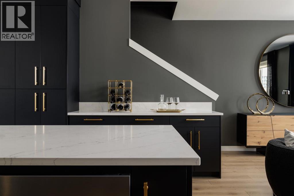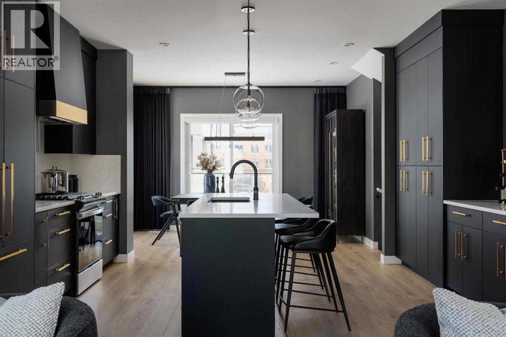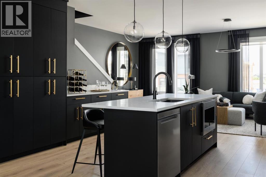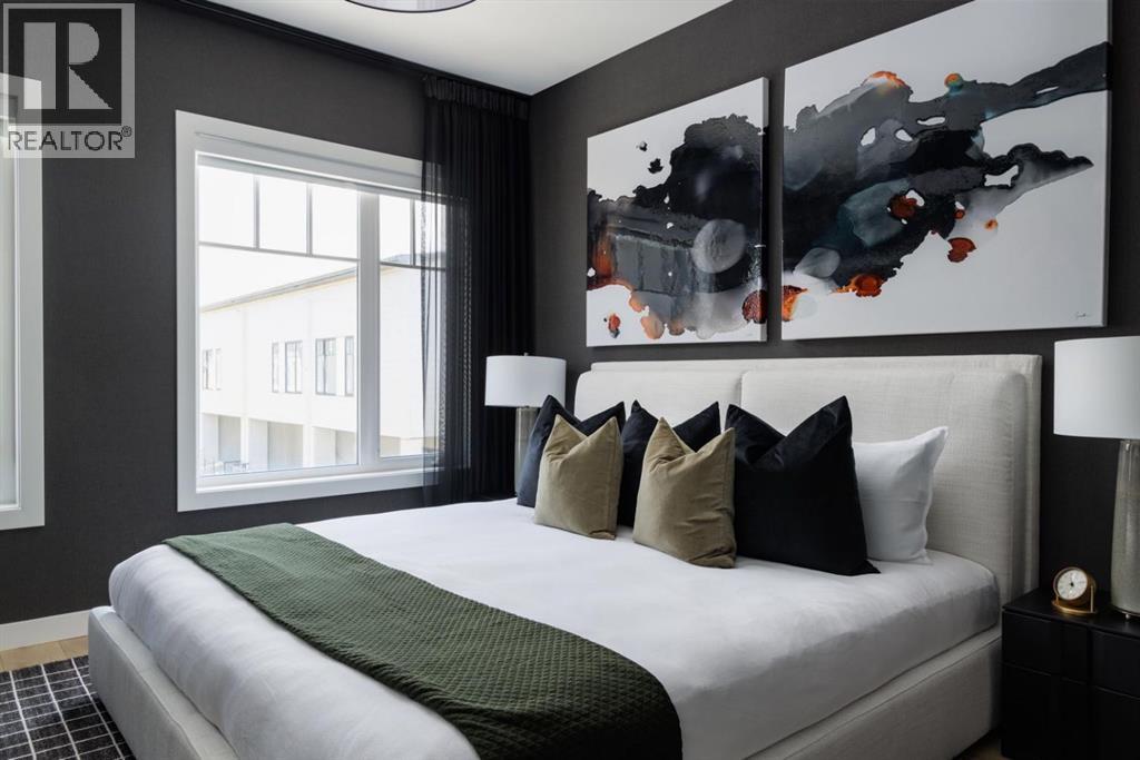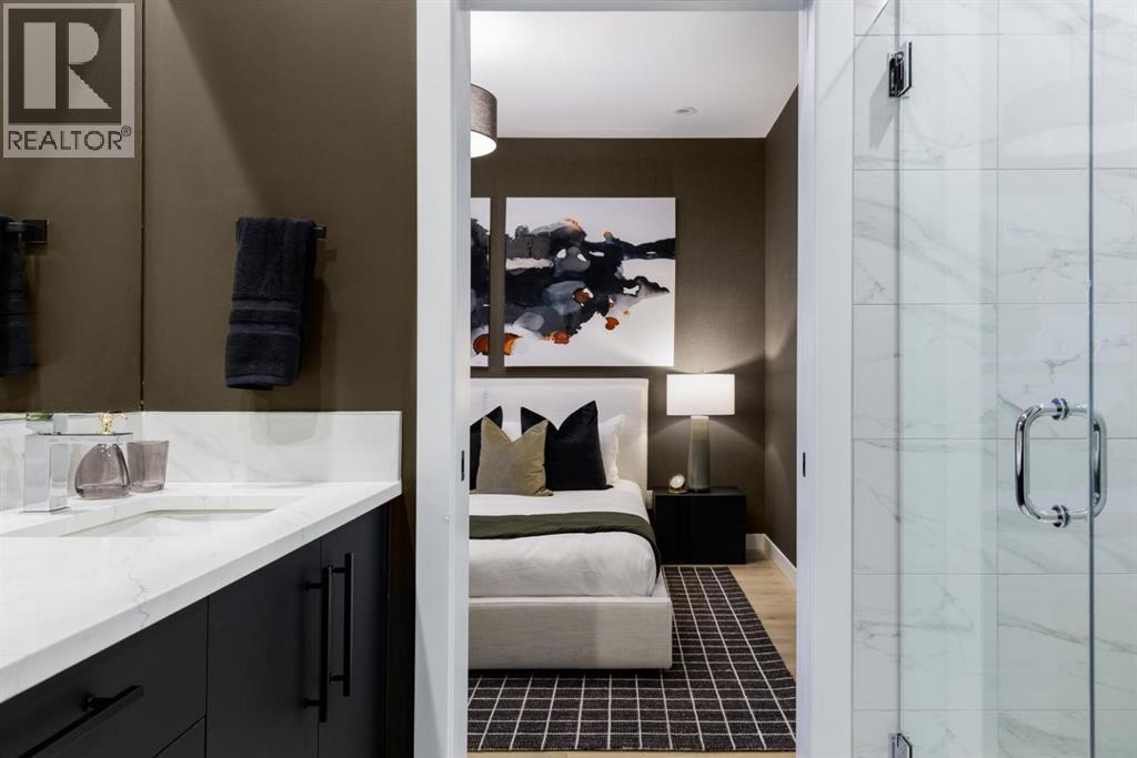 Experience the perfect blend of sophistication, style, and convenience at District Towns in Calgary’s vibrant West District. This beautifully designed 2-bedroom, 2.5-bathroom townhome combines modern architecture with timeless interiors, all enhanced by an expansive rooftop terrace overlooking Radio Park—a rare feature that truly sets this home apart.Thoughtfully crafted across three levels, this residence is ideal for those seeking a refined urban lifestyle. The main floor features a versatile flex room, perfect for a home office, fitness space, or creative studio, along with direct access to the attached double heated garage for ultimate convenience.The main living level is bright and inviting, with soaring ceilings, wide-plank flooring, and an open-concept layout designed for modern living. The chef-inspired kitchen is a showpiece, featuring full-height cabinetry with soft-close doors, a gas range, integrated refrigerator, built-in microwave, and a spacious pantry. A large eat-up quartz island anchors the space—perfect for casual dining, hosting friends, or enjoying a quiet morning coffee.Upstairs, you’ll find two generously sized bedrooms, each with its own private ensuite for maximum comfort and privacy. The primary suite is a true retreat, featuring a walk-in closet and a stunning 5-piece spa ensuite complete with a freestanding soaker tub, tiled shower, dual vanities, and elegant designer finishes. The second bedroom offers its own stylish ensuite, making it ideal for guests or family. A conveniently located upper-floor laundry adds to the home’s thoughtful design.Crowning this residence is the spectacular rooftop terrace, offering sweeping views of Radio Park and the West District skyline. This private outdoor space is perfect for summer barbecues, evening cocktails, or simply unwinding under the stars.Situated steps away from parks, pathways, boutique shops, and premium dining, District Towns deliver a connected, walkable lifestyle in one of Calgary’s most exciting new communities. With TRUMAN’s renowned craftsmanship and attention to detail, this home is more than a place to live—it’s where you can truly Live Better (id:51913)