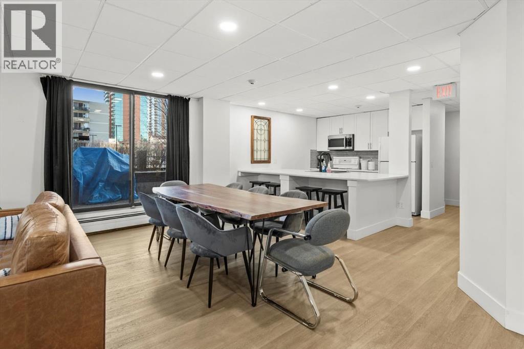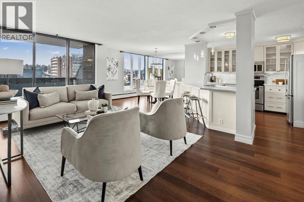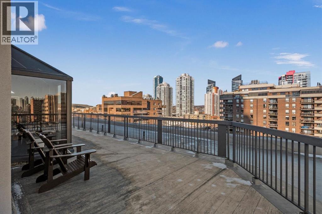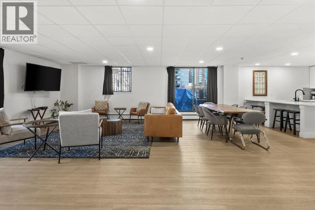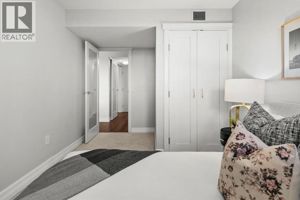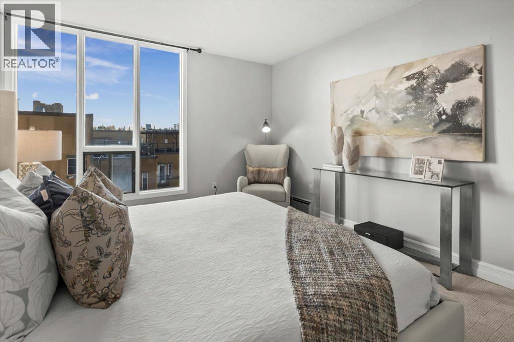Are you looking for an airy condo in a premium location with a sunny south exposure, and a shared rooftop terrace? What about over 1150sqf with numerous renovations, a large balcony and steps from the restaurants and shoppes of 17th Avenue? This open concept home features A/C, in home storage, an updated kitchen and bathrooms set behind a spacious foyer. A well-managed complex right in the heart of the Beltline, Cozart is amenity rich with onsite management, a party room, Sky Lounge, gym and car wash. In addition to being super transit accessible - walk to work, or out to meet friends at local treasures like Betty Lou’s Library, Alumni or The Sweatered Hen. Many condos in the DT have you walk right into the living area, but this home has a grand tiled entrance foyer, and as you walk into the space – take note the natural light cascading through bright windows. The oversized kitchen with eat up island provides plentiful storage and counter space, plus a custom built in dry bar/buffet. The dining area sets the scene for many a dinner party, and the living room allows you to host numerous friends for games night, or to watch your favourite shows. The primary suite is set back from the living area and easily fits a king size bed plus has room for a reading nook, with closet storage, built in library shelving and an ensuite bathroom complete with soaker tub and stand-up shower. Also find a second bedroom that is great for a guest room, home office or den, a 3-piece bathroom and in suite storage/laundry room. An assigned underground parking stall and storage locker complete this offering. Whether you are downsizing or moving up to a bit more space, this home is ready for a new owner. Enjoy year-round views from the rooftop patio that also has a cherished solarium lounge. This building is well managed, well maintained and celebrates community. Come and have a look before She Gon’! (id:51913)