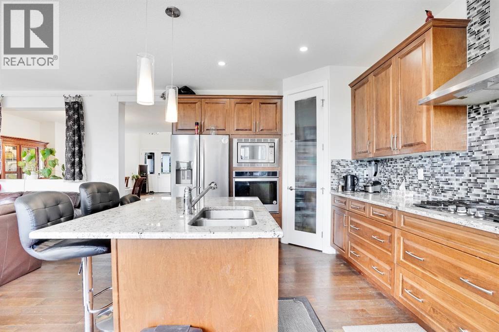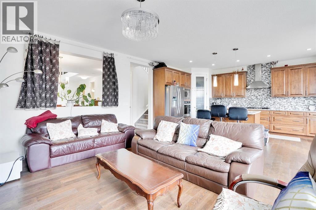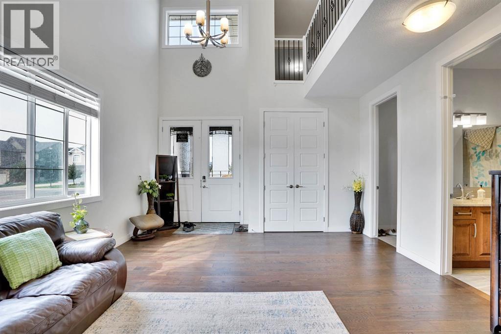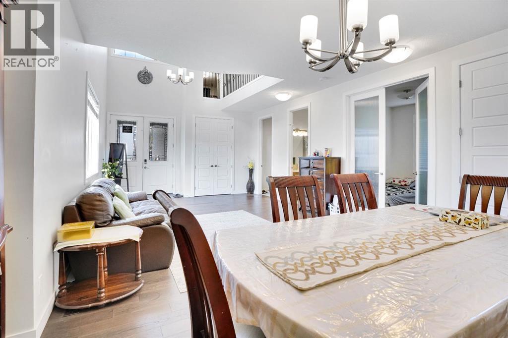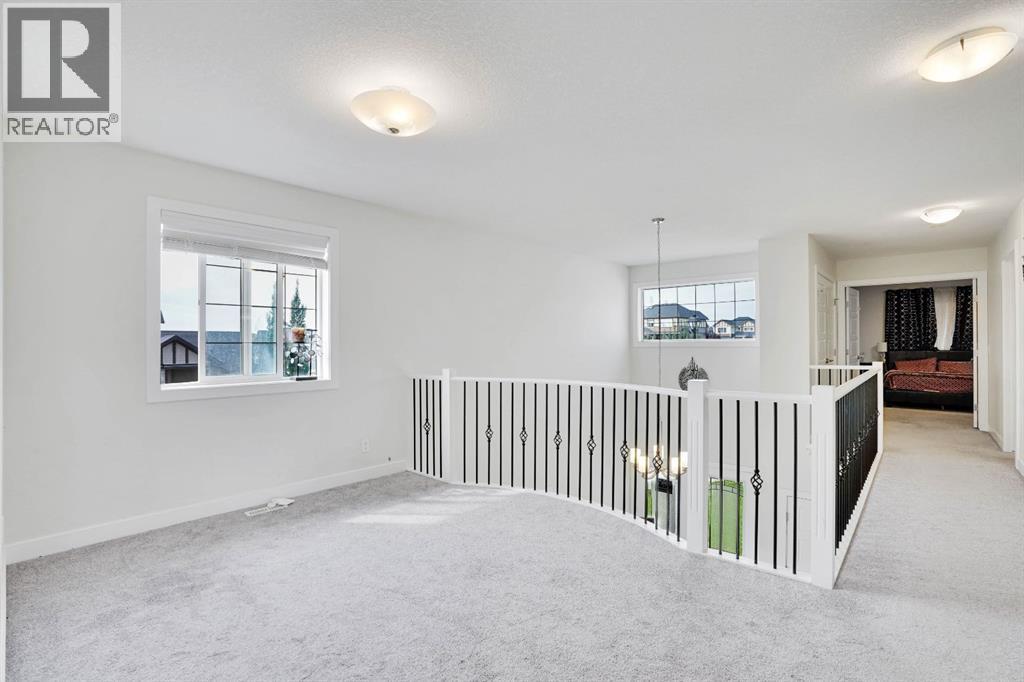Welcome to this beautifully upgraded home offering over 2,600 sq ft of above-grade living space, situated on a spacious corner lot in the heart of Chestermere. This premium lot offers extra yard space, enhanced curb appeal, and added privacy—perfect for families who value outdoor living. The main floor features an open-to-above living room filled with natural light, a full bathroom, a mudroom, a versatile office that can be used as a bedroom, a spacious dining area, and a stunning upgraded kitchen with a large island ideal for casual meals and entertaining. Upstairs, you’ll find four well-appointed bedrooms, including two luxurious master suites each with their own en-suite and walk-in closet, plus two additional bedrooms, a full bathroom, a convenient laundry room, and a generous bonus room perfect for relaxing or family time. The fully finished basement offers a separate entrance, a large recreational area, two additional bedrooms, and a full bathroom—ideal for extended family living or rental potential. Completing this home is a triple car garage and an expansive backyard. Located close to schools, parks, Chestermere Lake, shopping centres, restaurants, daycares, and the public library, this home combines space, function, and an unbeatable location in one of Chestermere’s most sought-after communities. (id:51913)