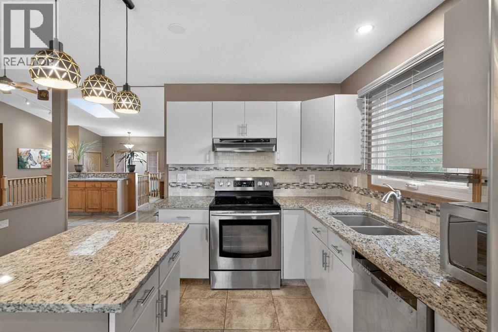 Nestled on a quiet, tucked-away street in the prestigious ESTATES OF DEER RUN, this exceptional bungalow offers a rare combination of sophisticated upgrades and an unbeatable location just steps from the natural beauty of Fish Creek Park. The heart of the home is designed for both comfort and style, featuring elegant granite countertops, stainless steel appliances, and a main living area highlighted by unique antique mirror shelving and a cozy, natural gas fireplace. Natural light pours into the space through a skylight equipped with remote-controlled blinds, while the functional layout includes the convenience of main-floor laundry and a dedicated wet bar for seamless entertaining. With five spacious bedrooms and three bathrooms, the home offers plenty of room for a growing family, including a basement bedroom that was originally a sauna and can easily be reverted for those seeking a private spa retreat.The exterior of the property is a masterclass in low-maintenance luxury and year-round enjoyment. The front yard makes a striking first impression with decorative grey rock landscaping and an underground sprinkler system, while the front entrance is secured with an included Nest video doorbell. In the backyard, a sprawling deck leads to a private oasis complete with a firepit and a gazebo featuring solid winter curtains for four-season use. For the outdoor chef, the BBQ is hooked up to a natural gas line and can be included with the home. Practicality extends to the mechanical systems as well, with a brand-new hot water tank, a new furnace, and a humidifier ensuring peak efficiency. Additionally, an extra fuse panel is already conveniently located in the cold storage room to accommodate a future hot tub.Car enthusiasts and hobbyists will find their sanctuary in the oversized double heated garage, which comes fully equipped with a built-in workbench, ample shelving, and the rare luxury of hot and cold water taps. Storage is abundant throughout the property, ensur ing every item has its place. From the meticulous interior finishes to the tech-ready upgrades and the prime location near Calgary’s favourite provincial park, this home represents a premier opportunity to live in one of the city's most sought-after estate enclaves. (id:51913)