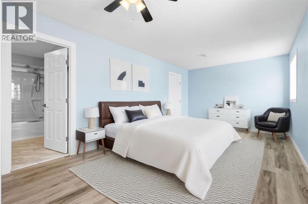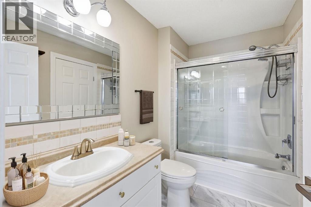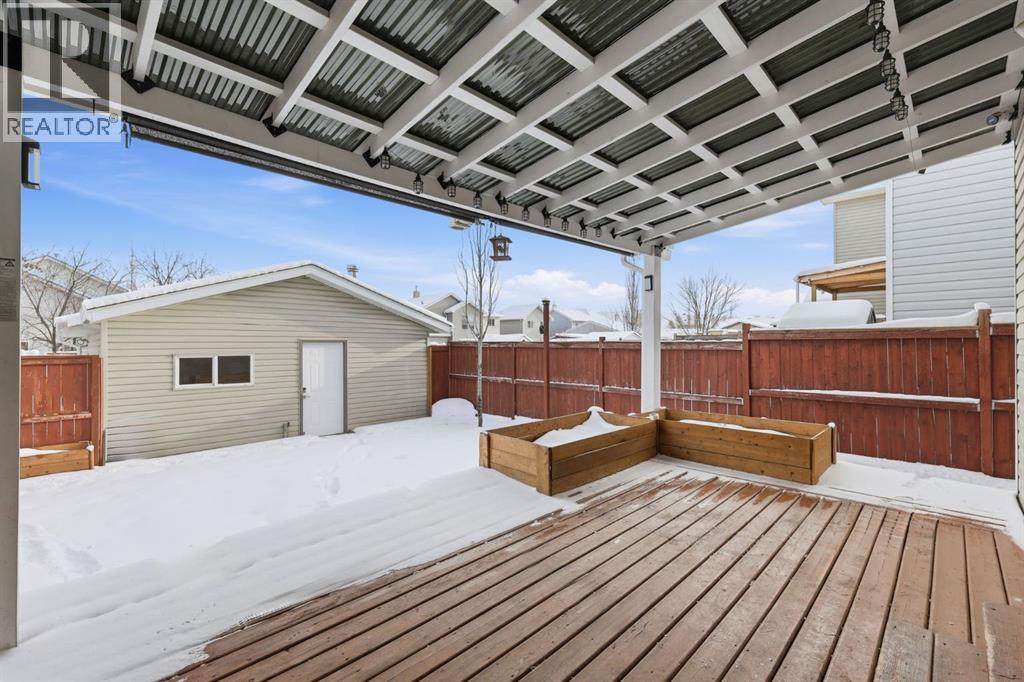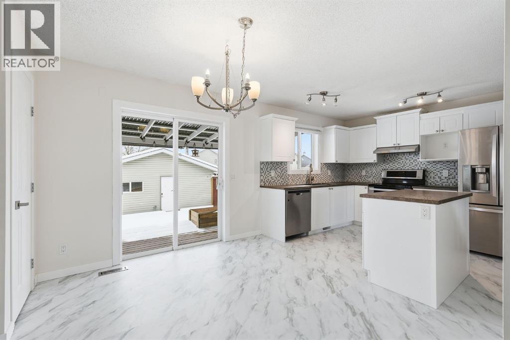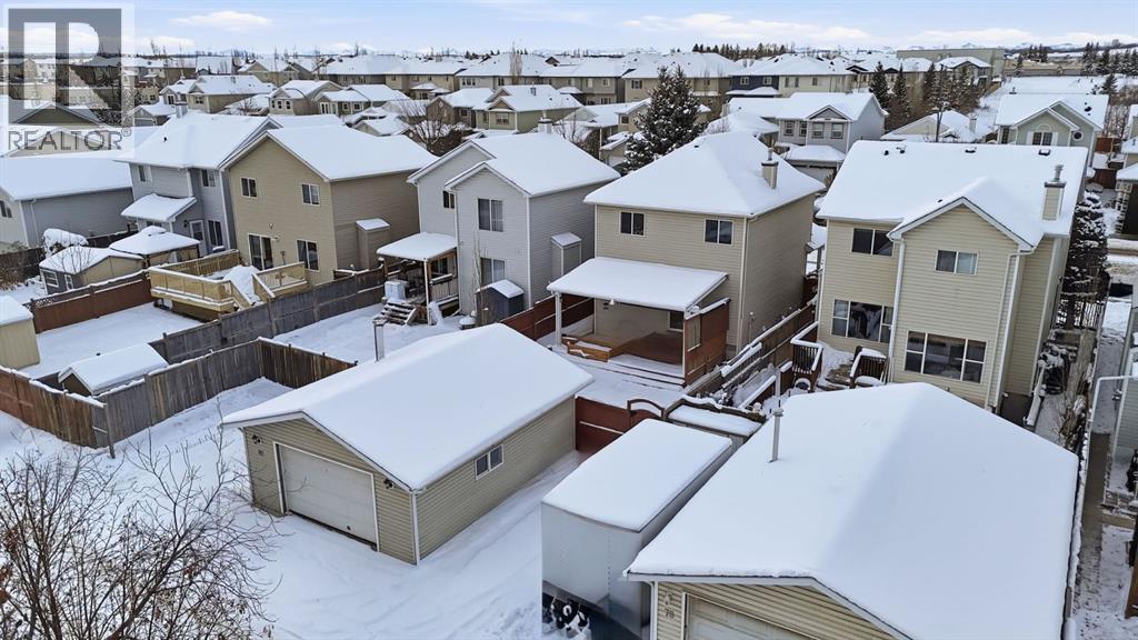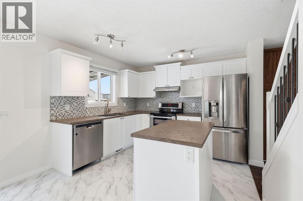Stunning Former Showhome in the Heart of Bridlewood – Immaculate Inside & Out, with fresh and bright professional paint throughout, and brand-new flooring on main and upper. Ideally located on a quiet street in the popular family friendly community of Bridlewood. From the moment you arrive, you’ll notice the inviting curb appeal with its charming front porch upgraded with low-maintenance decking.Step inside to a warm and thoughtfully designed main floor featuring new flooring up and down, bright West-facing windows, and a cozy gas fireplace that anchors the living space. The kitchen offers timeless white cabinetry, upgraded stainless steel appliances, a stylish backsplash, and a versatile moveable island with power—perfect for meal prep or extra seating. A built-in desk area with added cabinetry complements the adjoining dining space, which opens onto a spacious covered East-facing deck complete with outdoor roller shades—great for morning coffee or evening shade.Upstairs, the large primary suite includes his and hers closets and convenient access to the updated 4-piece bathroom. Two additional bedrooms complete this level, along with access to attic storage for those extra items.The fully finished basement expands your living options with laminate flooring, a comfortable family room, a dedicated recreation/games area, a 3-piece bathroom, and a laundry area with sink plus extra storage under the stairs.A major standout is the oversized double detached garage, fully insulated and set up for the hobbyist with a 220V heater, wood stove, and workshop. There’s even dedicated RV parking for added versatility.Shingles were replaced on the house in 2012 and on the garage in 2022, recently installed A/C cooling, water filtration system - offering peace of mind for the next owner.This home is perfectly situated within walking distance to schools, parks, restaurants, and everyday shopping, with quick access to Stoney and Macleod Trail. Properties this well maintained ar e rare—this one truly shows pride of ownership throughout. (id:51913)
