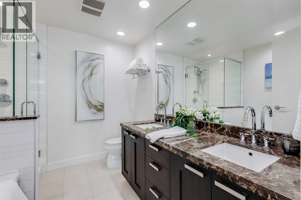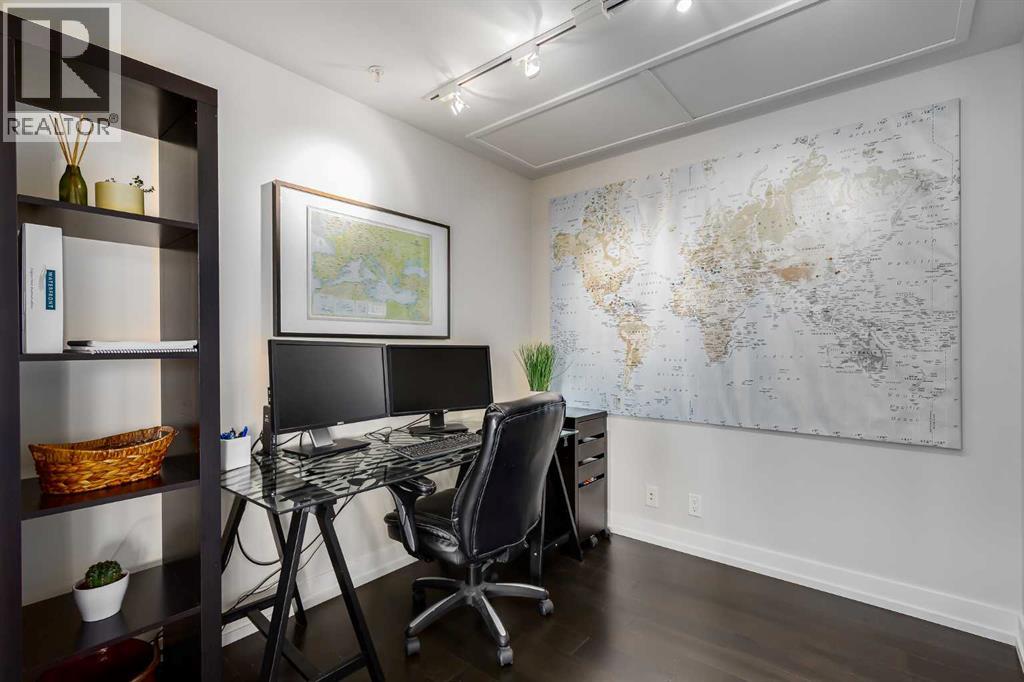 This 9th floor corner unit at Waterfront offers two bedrooms, two bathrooms, and a private office, all with impressive views of the Bow River. With over 1,100 square feet of thoughtfully designed living space, the residence combines functionality with upscale finishes for an elevated downtown lifestyle. The open-concept layout is enhanced by 9-foot ceilings and expansive windows that fill the home with natural light, extending across the main living, dining, and kitchen areas finished with rich hardwood flooring. The kitchen is designed with high-end finishes, including quartz countertops, a brand-new gas cooktop, premium built-in refrigerator, integrated microwave, stainless steel appliances, and a large island that provides both functionality and style for meal preparation, casual dining, or entertaining. Adjacent to the kitchen, a defined dining area flows into the living room, where a gas fireplace creates a warm focal point. From both the living room and primary suite, enjoy unobstructed views of the Bow River. The primary retreat features a walk-through closet and a spa-inspired five-piece ensuite, complete with dual vanities, a glass-enclosed shower, and a deep soaker tub designed for ultimate relaxation. A second bedroom is located on the opposite side of the unit for privacy and is paired with its own three-piece bathroom. Completing the layout is a full-sized laundry room with additional storage, and a separate office with sliding doors—ideal for working from home. Step outside to a generous covered balcony with a gas line for barbecuing and plenty of room for outdoor seating, all while enjoying south and east-facing views over the river and downtown. Comfort is further enhanced by central air conditioning, and the unit comes with two heated underground parking stalls plus a storage locker. The Waterfront development is known for its extensive amenities, designed to meet a wide range of lifestyles. Residents benefit from 24-hour concierge and security, a f ully equipped fitness centre with yoga studio, whirlpool, and steam rooms, as well as a private theatre and owners’ lounge with pool table, televisions, and a kitchen. Additional conveniences include car wash bays, guest suites, bike storage, landscaped courtyards, and an outdoor garden patio. At street level, a selection of shops and services—including a coffee shop, restaurant, and hair studio—add to the everyday ease of living here. Beyond the building, the Bow River pathways, Prince’s Island Park, Sien Lok Park, and Chinatown are steps away, offering a balance of recreation and dining options. The C-Train, downtown offices, the public library, Stephen Avenue, and a variety of restaurants and shopping destinations are all within walking distance, making this an ideal home for professionals or anyone seeking convenience in the heart of the city. Take advantage of your opportunity to see this incredible property in person—book your showing today! Check out the floor plans and 3D tour for a closer look! (id:51913)
